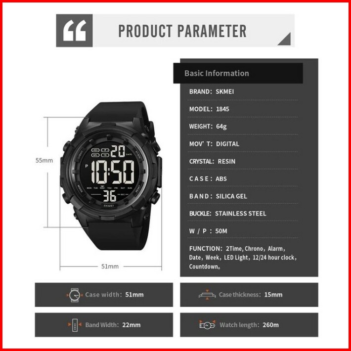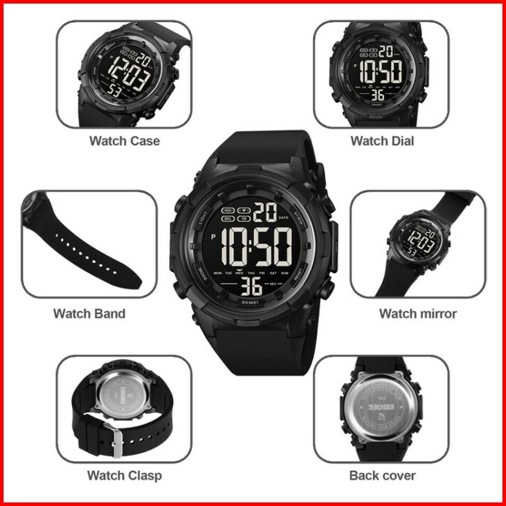 Jam Tangan Pria Digital Skmei 1845 Black Water Resistant 30m