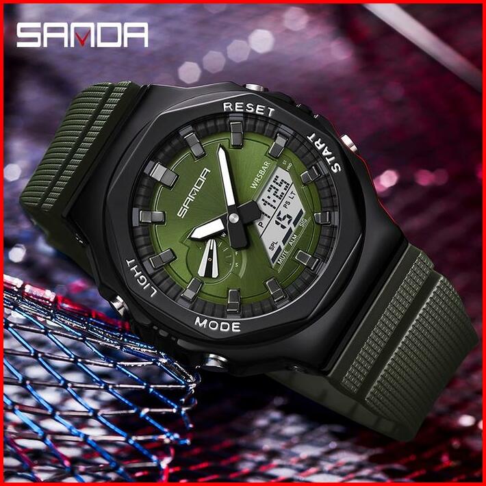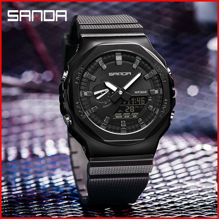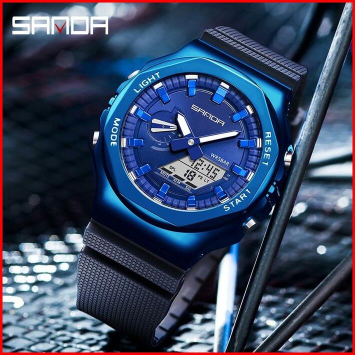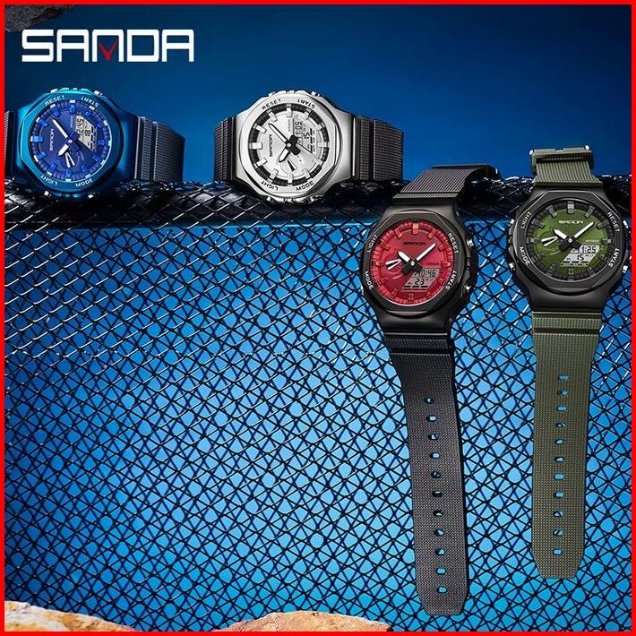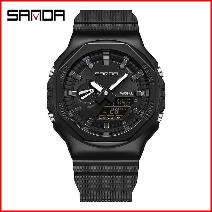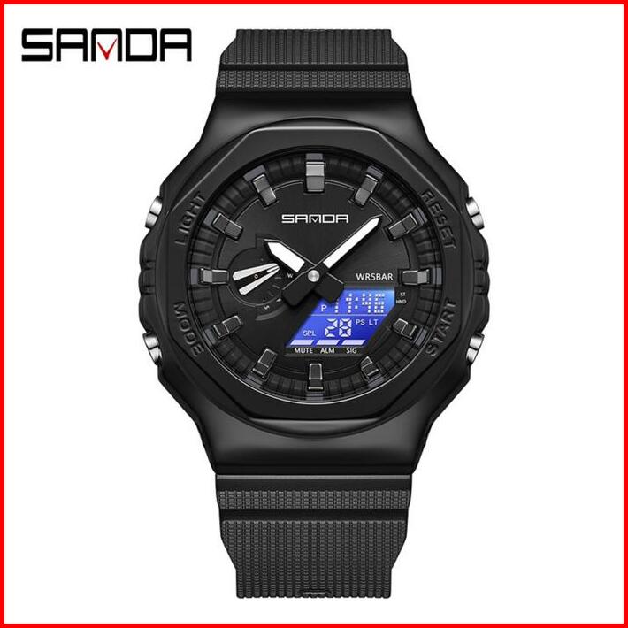 Jam Tangan Pria Wanita Digital Sport El Backlight Tali Rubber Anti Air Sanda 3167