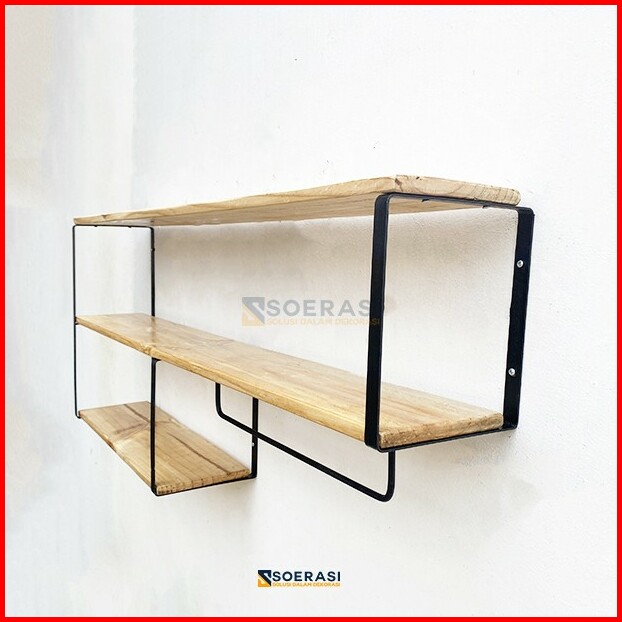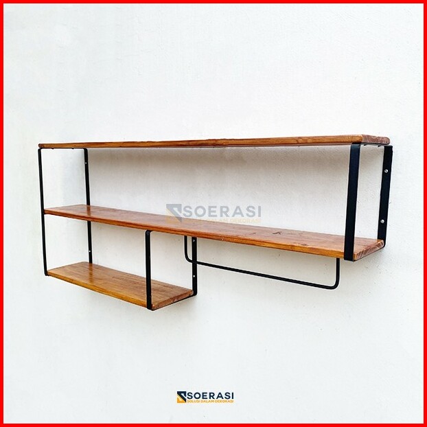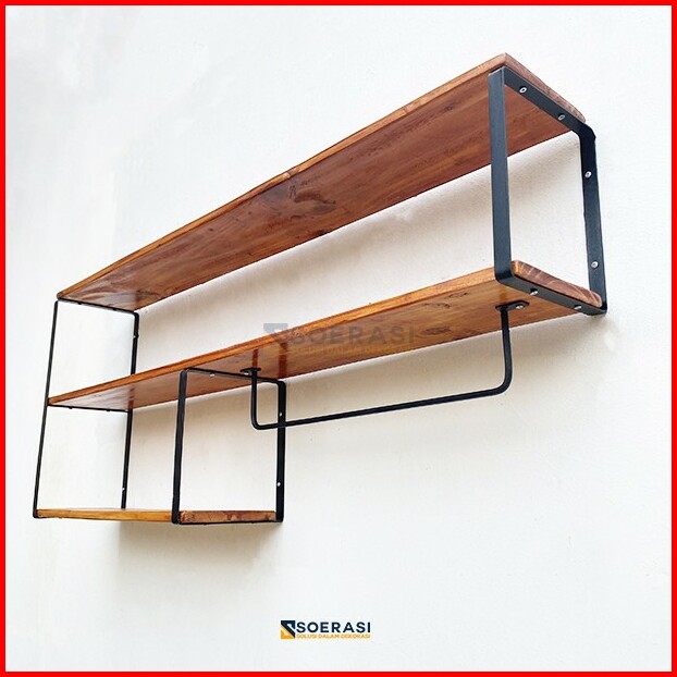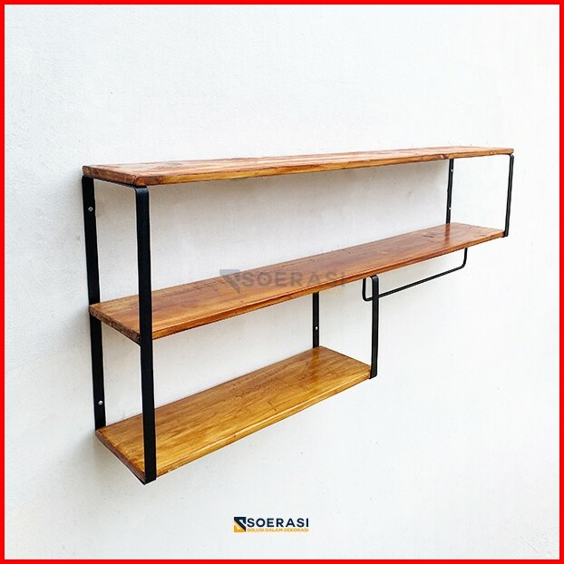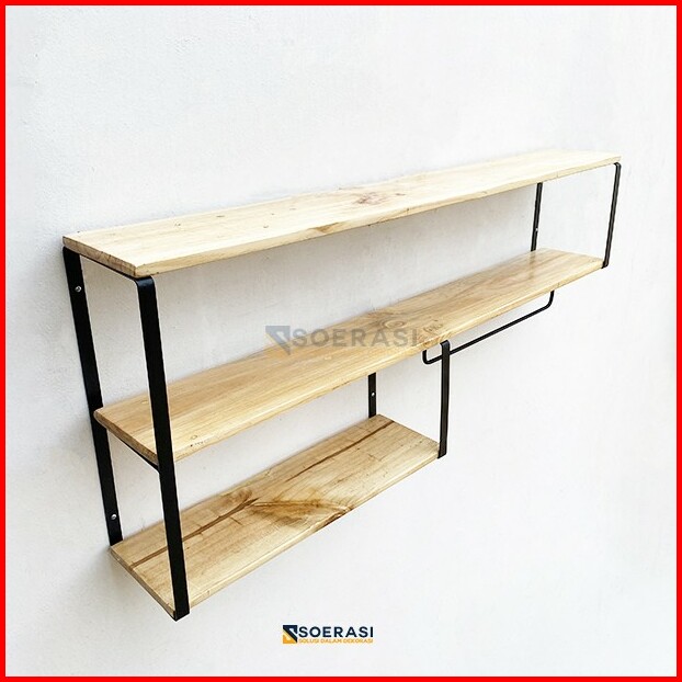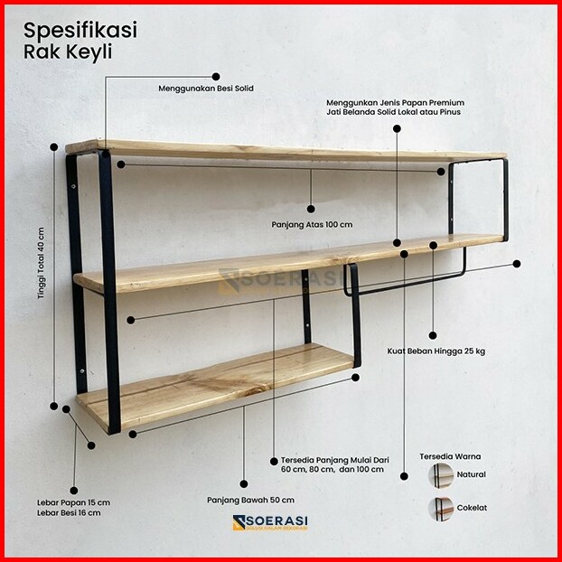 Keli Rak Dinding Serbaguna Besi Kayu Penyimpanan Tingkat Dapur Luas