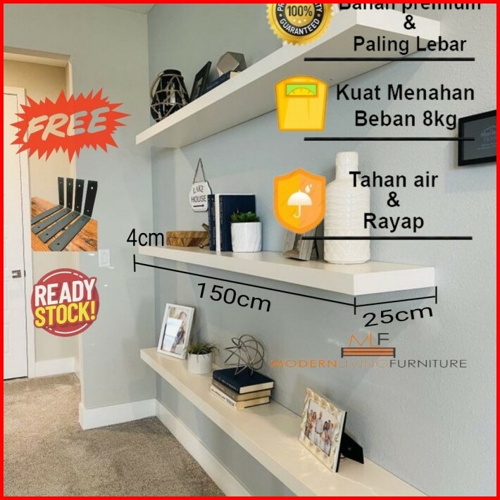 Ambalan Dinding Minimalis Rak Serbaguna Size 40-150cm X 25 Cm X 4 Cm