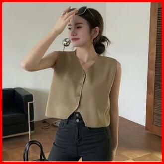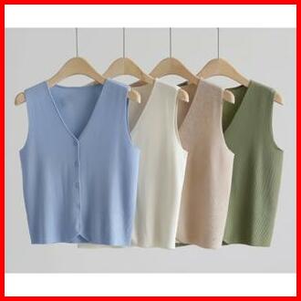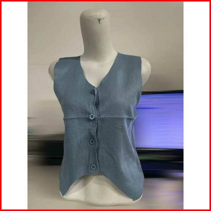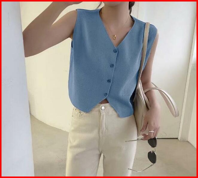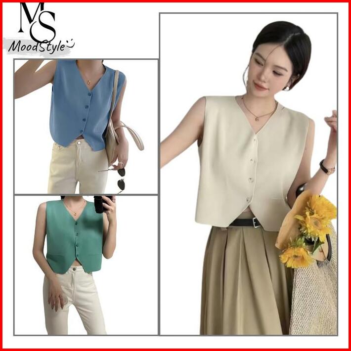 Moodstyle Bj1579 Atasan Vest Rajut Kerah V Baju Wanita Korean Style Sleeveles Top Rompi Panjang Crop Hitam Outer