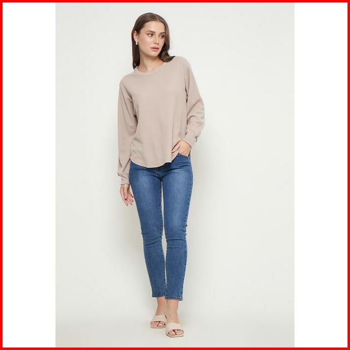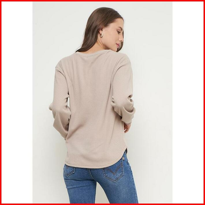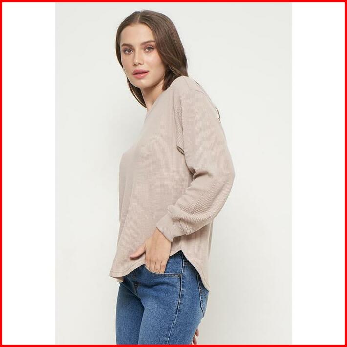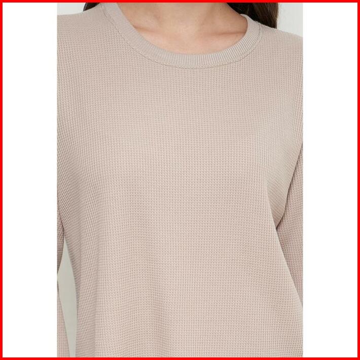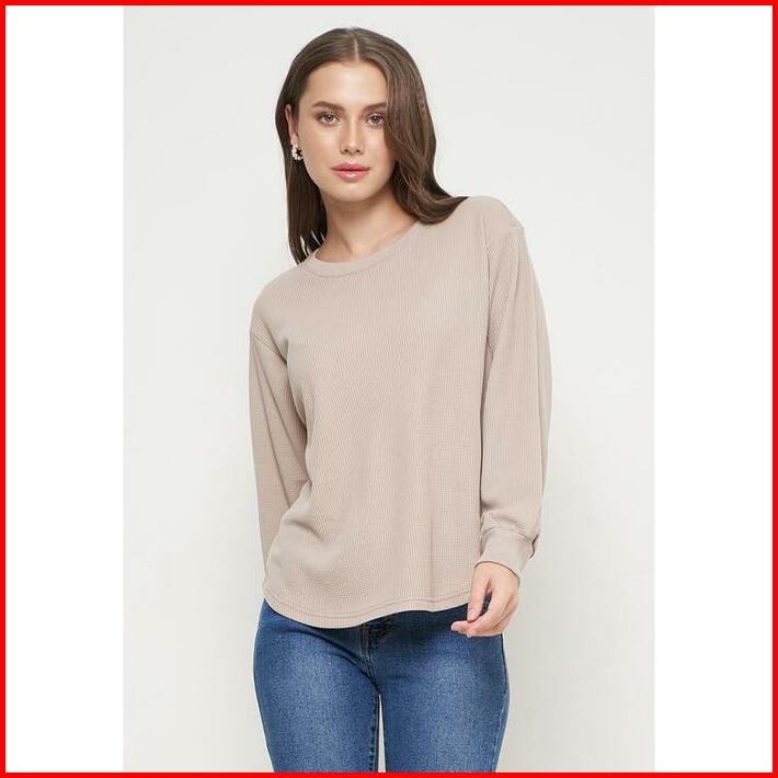Sweater Knit Waffle Outer Sweater Rajut Wanita Lengan Panjang Khaky Sr001