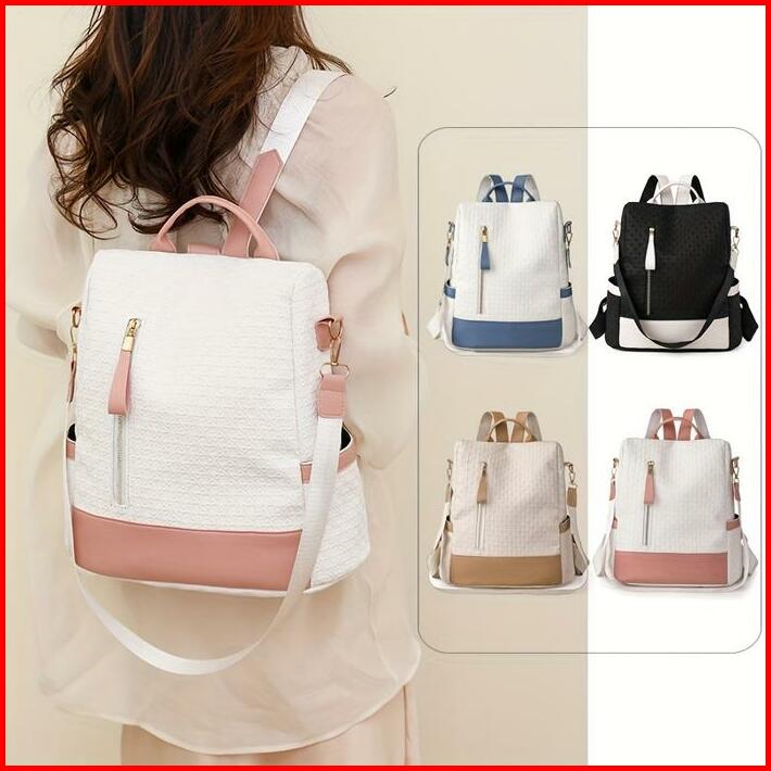 Tas Ransel Wanita Serbaguna Tas Gendong Kulit Sintetis Motif Embos Multifungsi Anak Perempuan Tas Punggung Wanita Tas Se