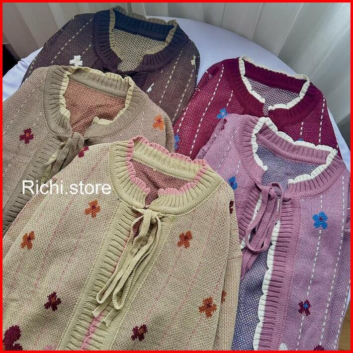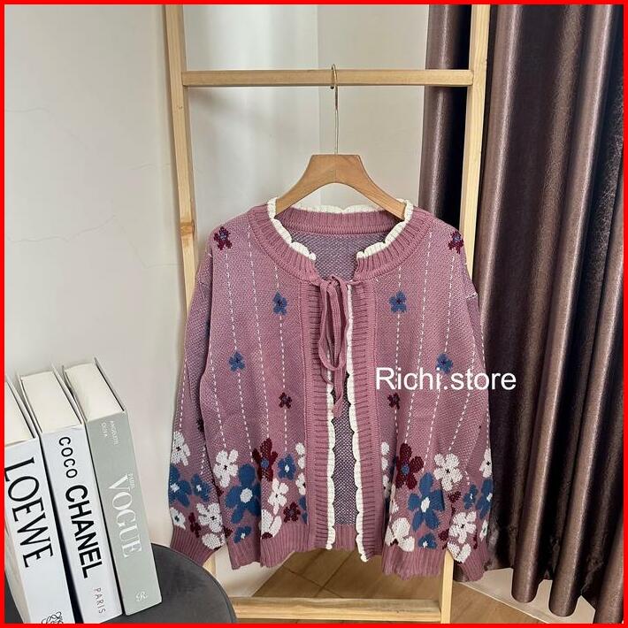 Rheinanda Outer Rajut Pita Cardigan Wanita Motif Bunga