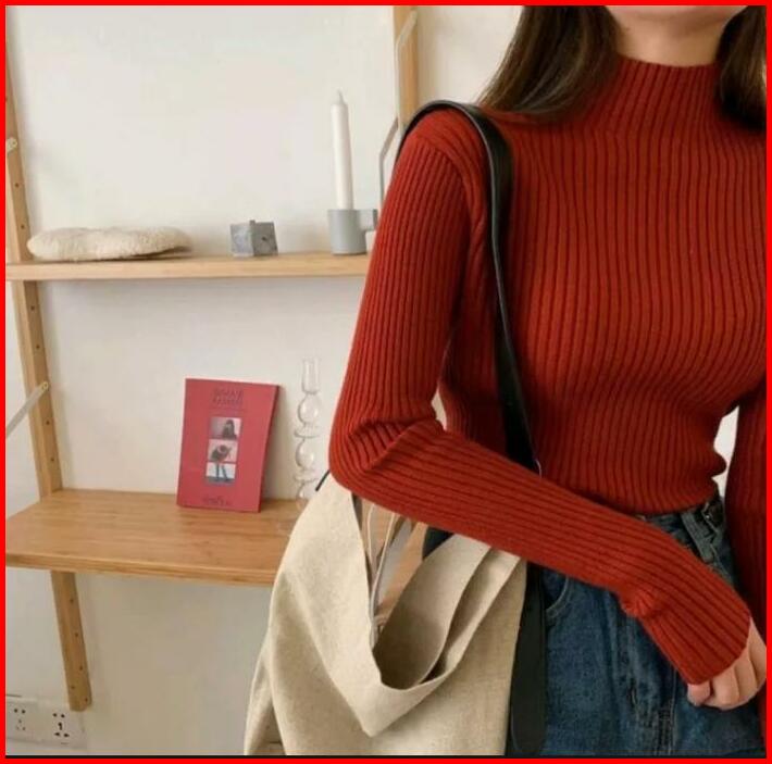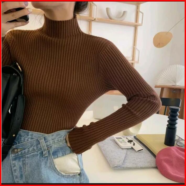 Kaos Rajut Turtleneck Wanita Lengan Panjang Atasan Wanita Inner Rajut Fit Top Baju Cantik Knitwear Hitam Kerah Baju Raju