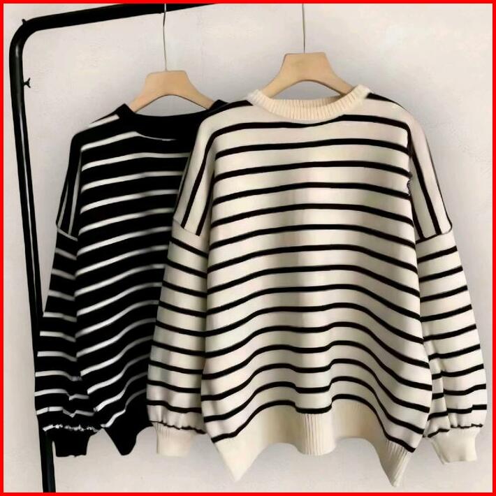Bayoneta Strip Oversize Balon Knit Bayoneta Sweater Rajut Bayoneta Sweater Tangan Balon Bayoneta Knit Bayoneta Sweater B