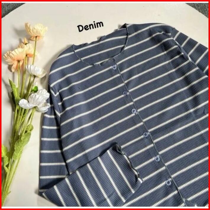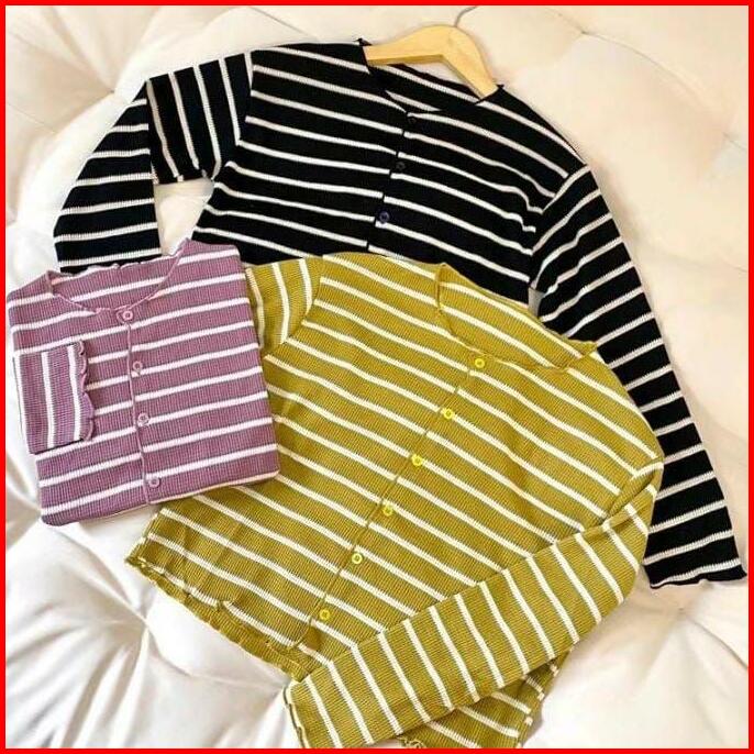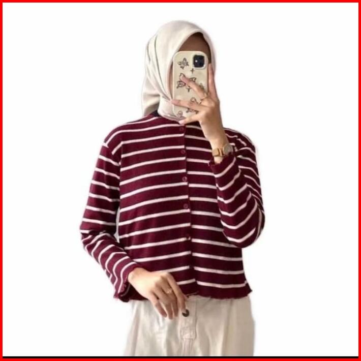 Cardigan Stripe Salur Wanita Cardigan Crop Cardigan Rajut Outer