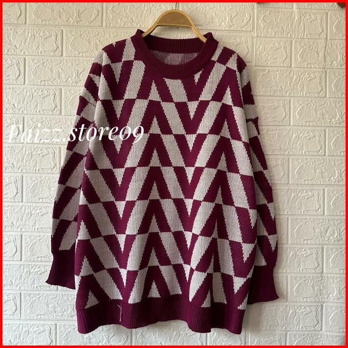 A55 Giva Knit Sweater Rajut Oversize Top Atasan Lengan Panjang Wanita Fit Tangan Knitwear Outer Baju