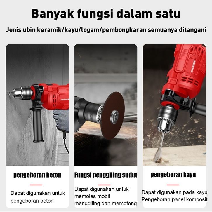 Mesin Bor Listrik 10mm Bolak Balik Electric Drill Bor Beton Kayu Besi Tembok Bor Listrik Impact bor beton bor dinding bo