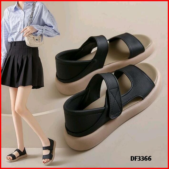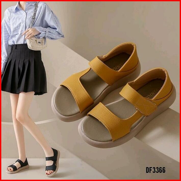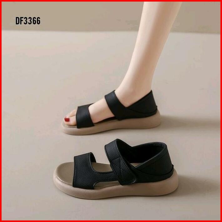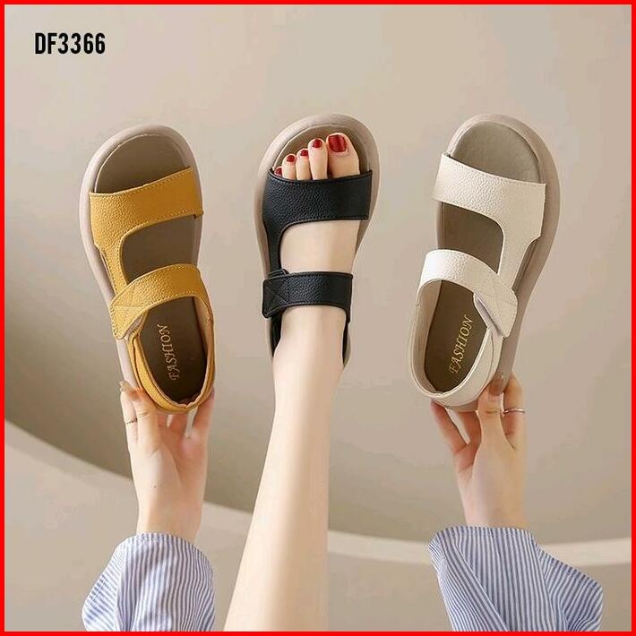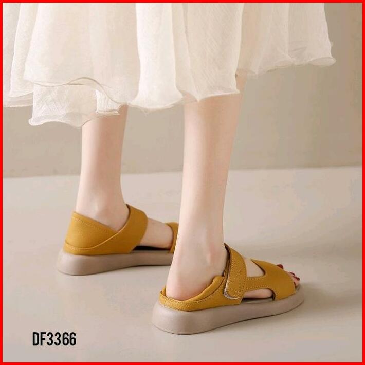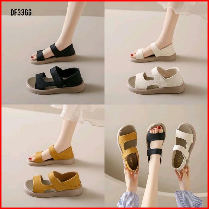 Sandal Santai Slop Retro Velcro Df3366 Sandal Slip On Hak Datar Open Toe Wanita