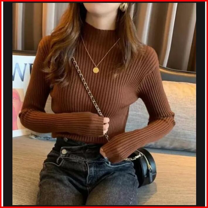 Inner Rajut Turtleneck Lengan Panjang Wanita Knitwear Atasan Baju Cantik Top Kerah Crop Outer Tangan Tebal Sweater Nyama