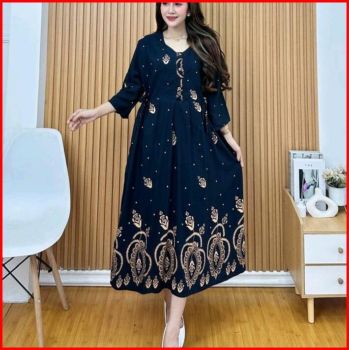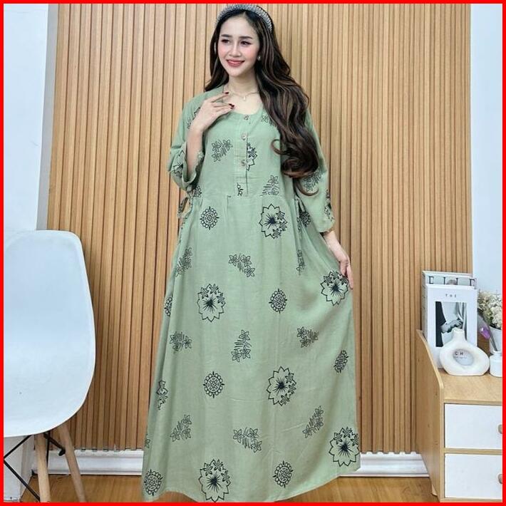 Daster Cibi Lengan 3 4 Jumbo Panjang Daster Wanita Kancing Depan Bumil Motif Terbaru Bahan Rayon Tebal Busui Hits