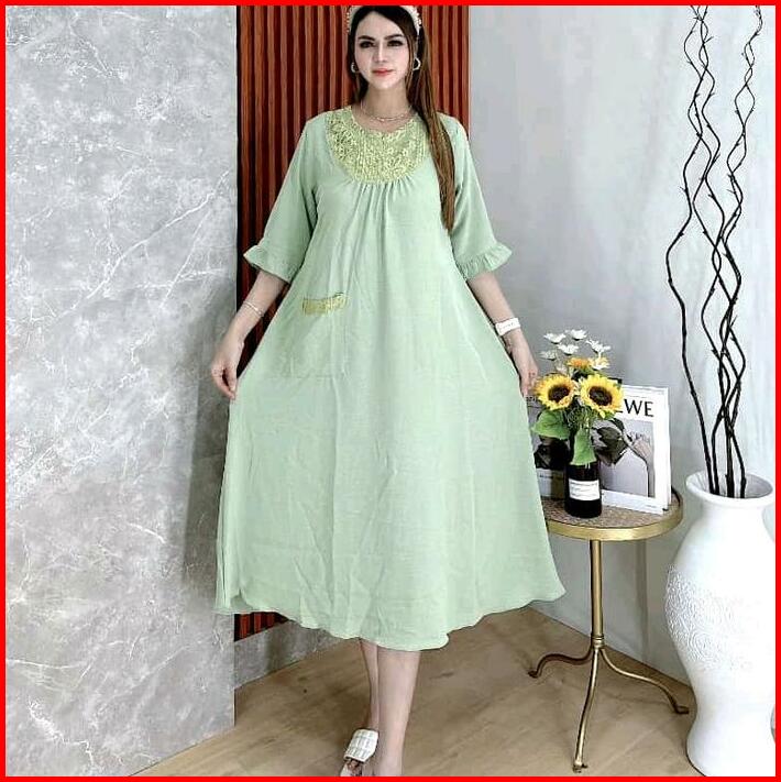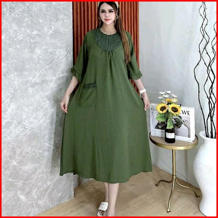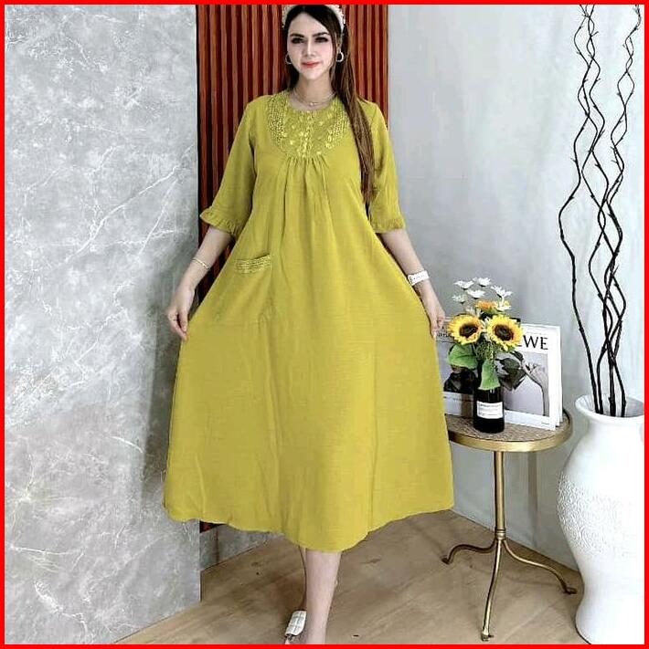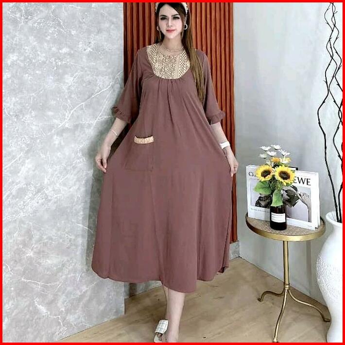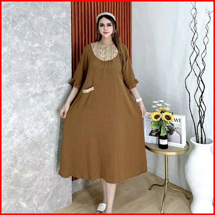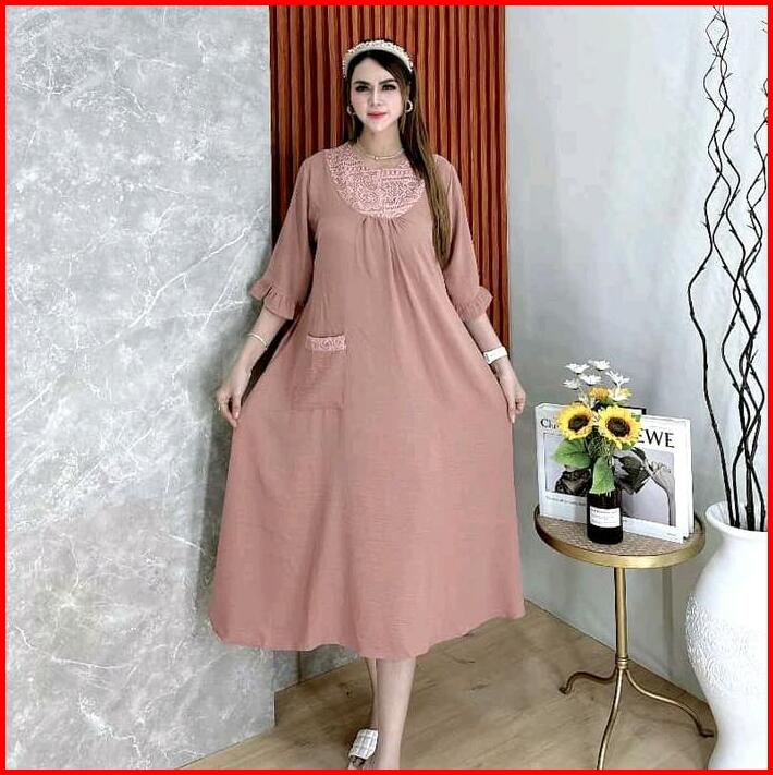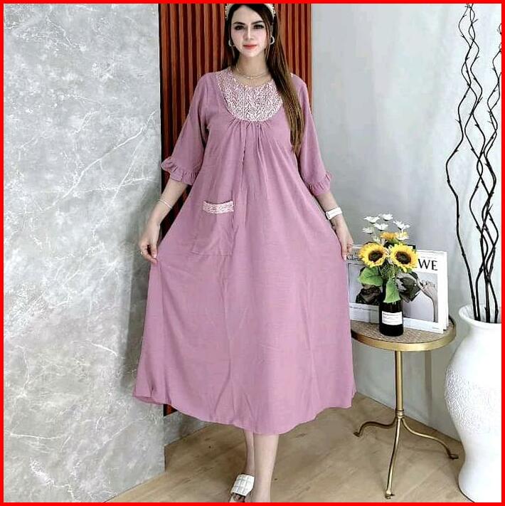 Daster Crinkle Airflow Saku Daster Renda Premium Daster Dewasa Realpi8ct Wanita Panjang Nyaman Tidur Dress Busui Bumil