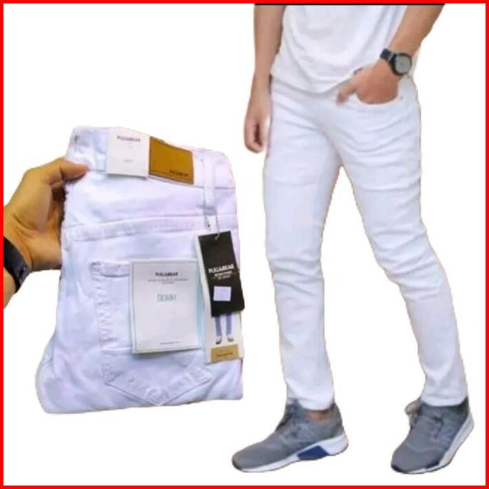 Celana Jeans Pria Putih Bersih Celana Jeans Denim Pria Putih Celana Panjang Jeans Pria Celana Pria Model Pensil Slimfit