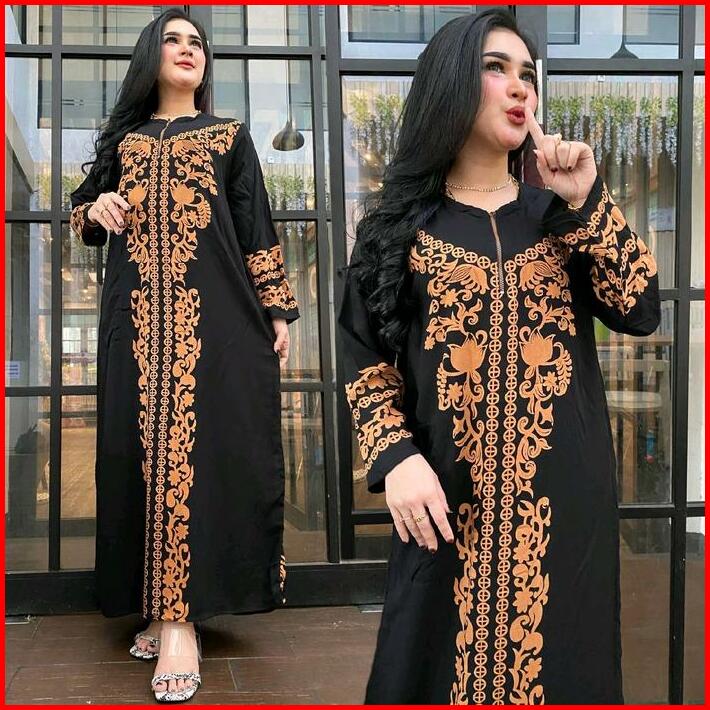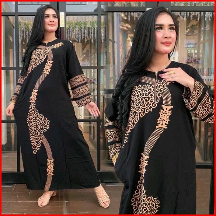 Daster Panjang Semata Kaki Lengan Panjang Resleting Depan Busui Wanita Modern Elegan Kekinian