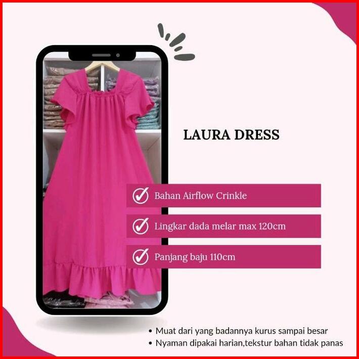 Terlaris Dress Fuji Zahra Cringkle Daster Laura Serut Busui Crinkle Nyaman Panjang Tebal Wanita Pink Airflow Dewasa Bumi