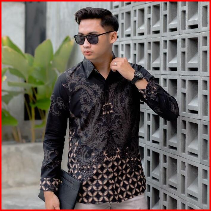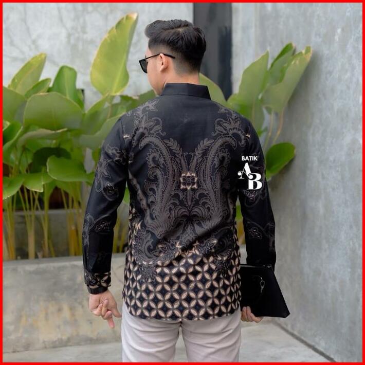 Batik Ab Kemeja Slimfit Lengan Panjang Lapis Furing Warna Hitam Elegan Baju Kerja Pria Kekinian Modest S Superman Guru K