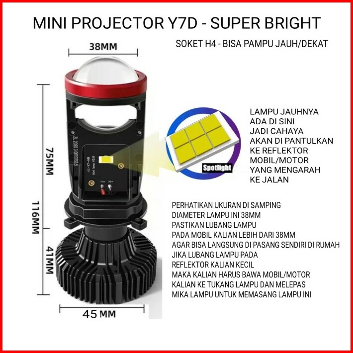 Lampu Led Mini Projector Projie H4 Y7d Super Bright Mobil Motor