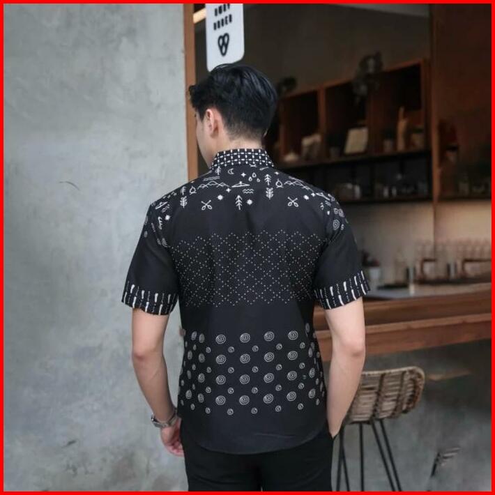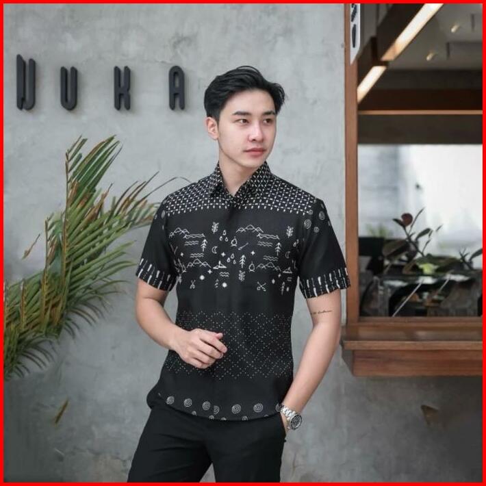 Arkana Hitam Kemeja Batik Pria Lengan Pendek Furing Full Katun Halus Lembut Slimfit Tebal