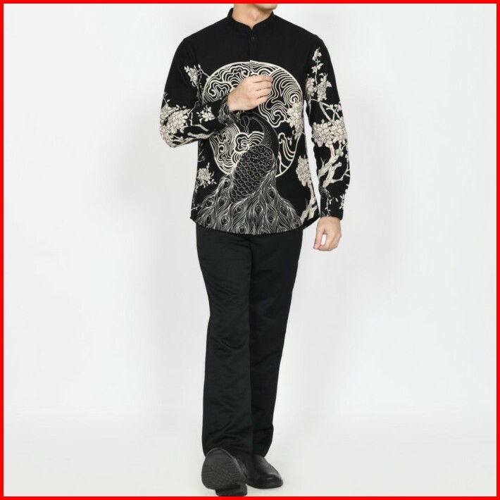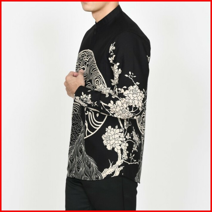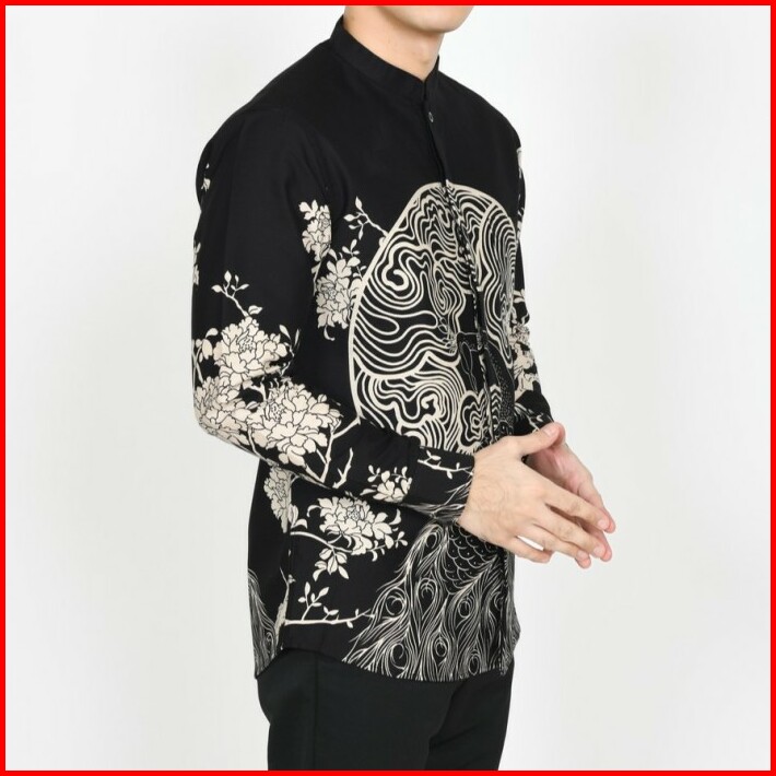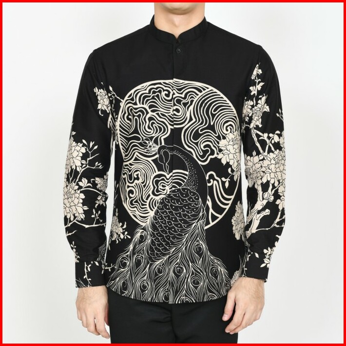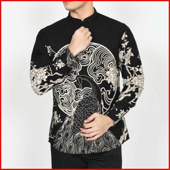Kemeja Batik Pria Slimfit Kemeja Lengan Panjang Premium Furing Kerah Shanghai Cny Imlek 2625 Hitam
