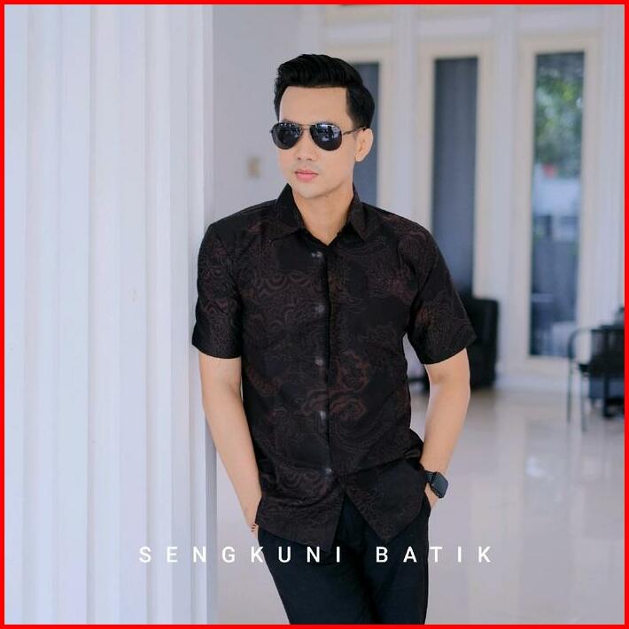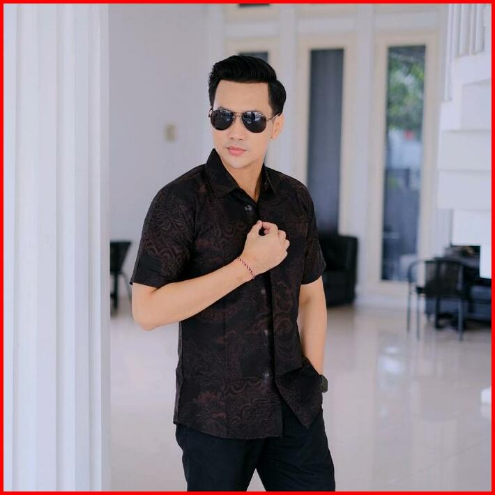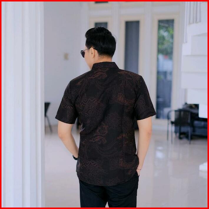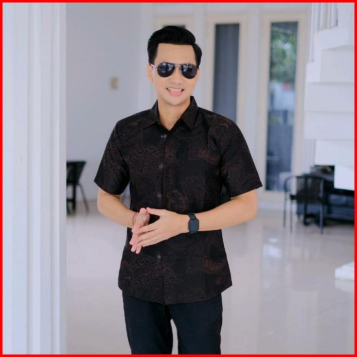 Dharma Kemeja Batik Slimfit Hitam Minimalis Bahan Katun Lapis Furing Premium Pria Lengan Pendek