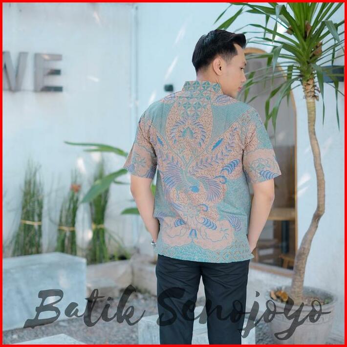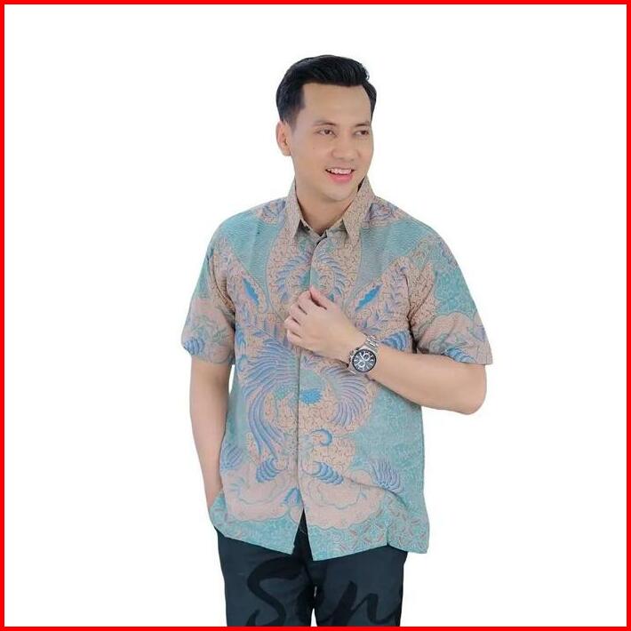 Kemeja Batik Lengan Pendek Bahan Katun Motif Baby Blue Terbaru Baju Katun Reguler Fit Pria Printing Bisa Rekues Casual F