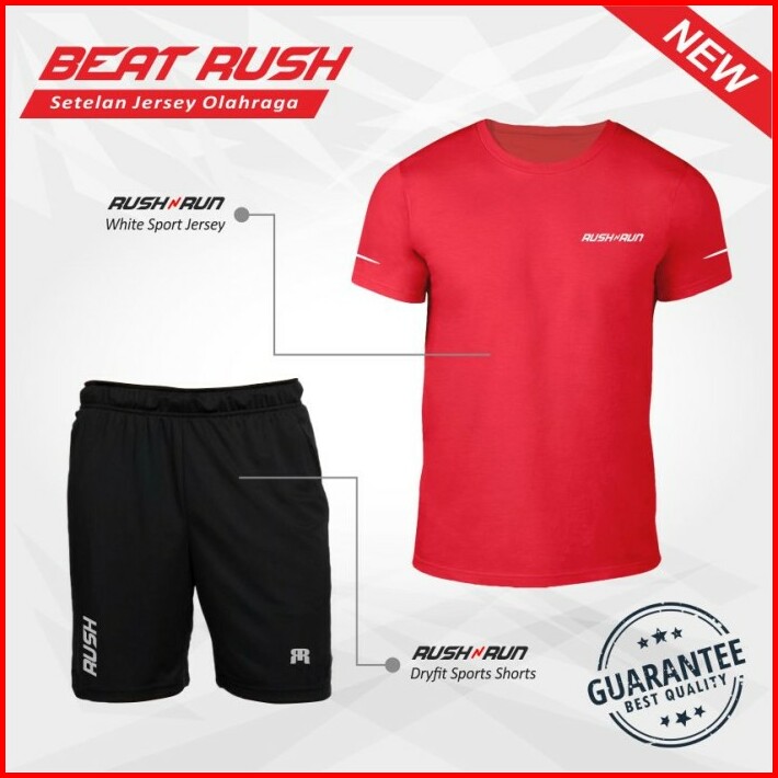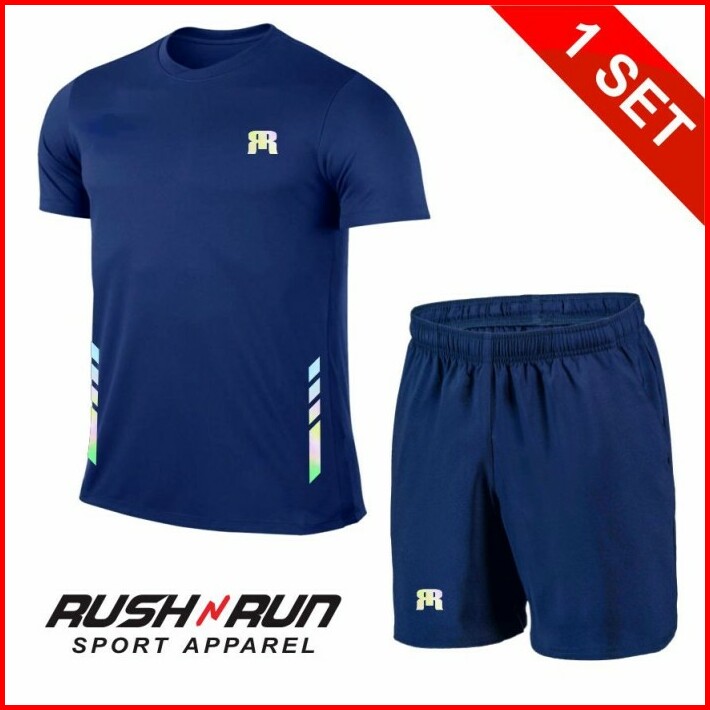 Setelan Baju Olahraga Pria 1 Set Rush N Run Bahan Dry Fit Lari Futsal