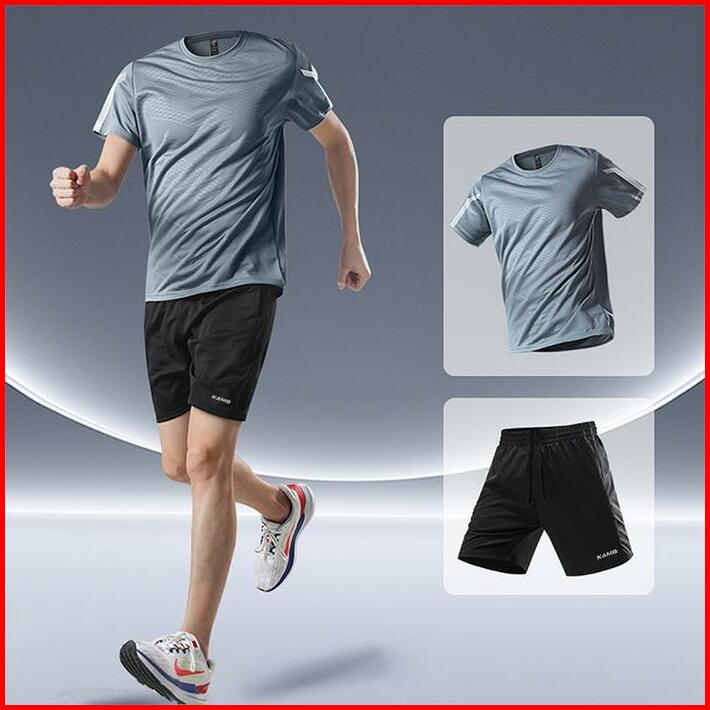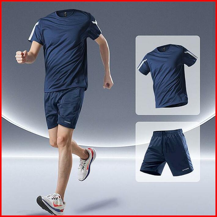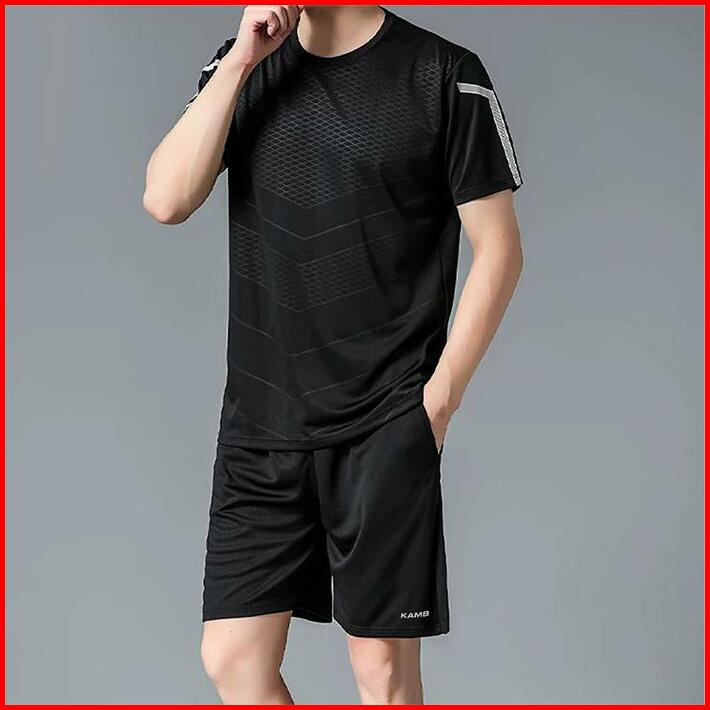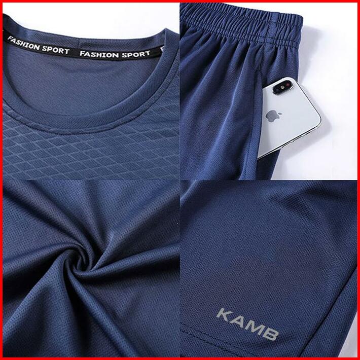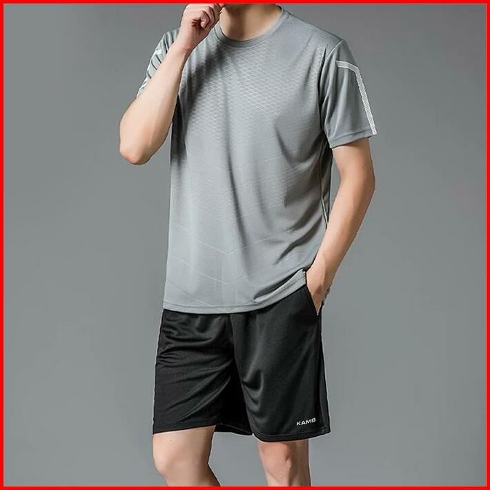 Kamb Jersey Olahraga Pria 1satu Set Baju Olahraga Pria 2pcs Bernapas Dan Cepat Kering Sport