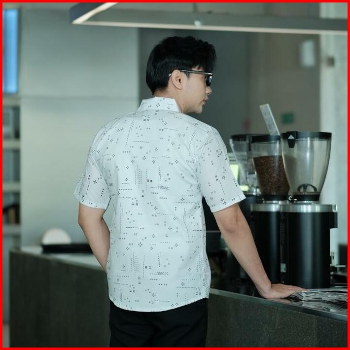 Purwaka Putih Kemeja Batik Pria Lengan Pendek Furing Full Katun Slimfit Halus Pendek