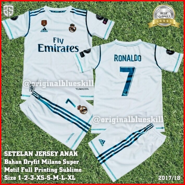 Setelan Jersey Anak Realmadrid Home 2017-18 Setelan Baju Bola Anak Pakaian Olahraga Anak Jersey Sepak Bola Anak Setelan