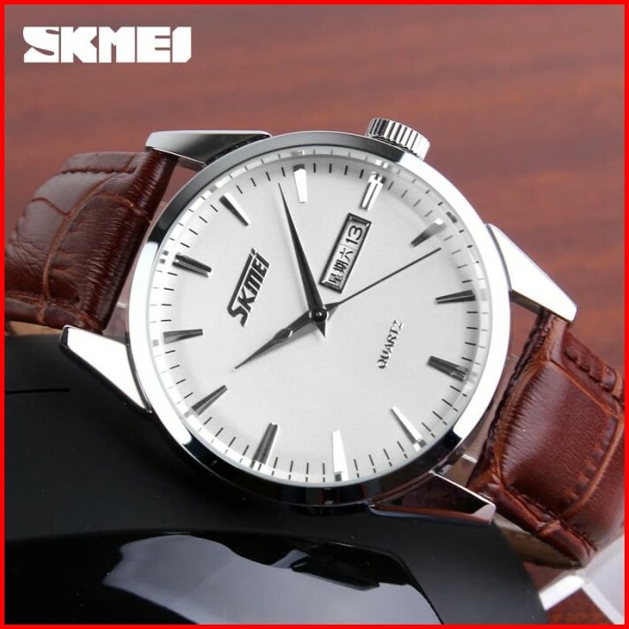 Jam Tangan Pria Analog Skmei 9073 Silver White Dail Gent Wtr Resis 30m
