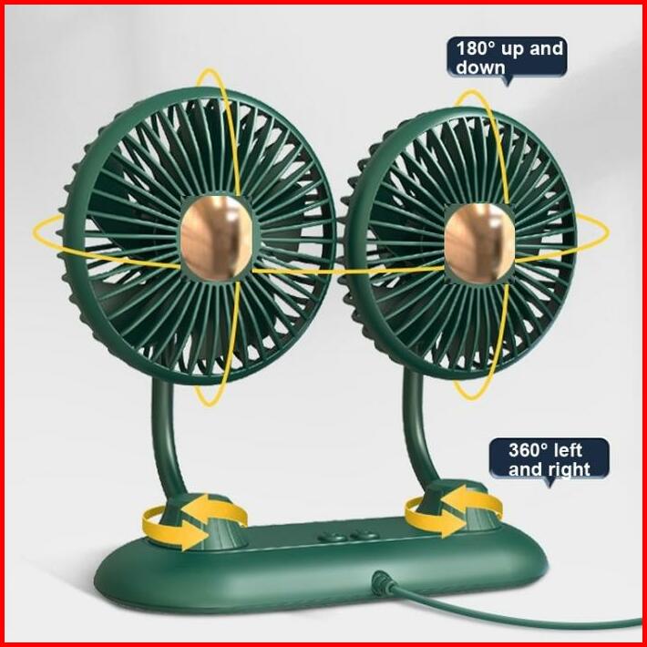 Car Double Head Fan Usb 360 Kipas Angin Kepala 2 Portable Dashboard Mobil Premium