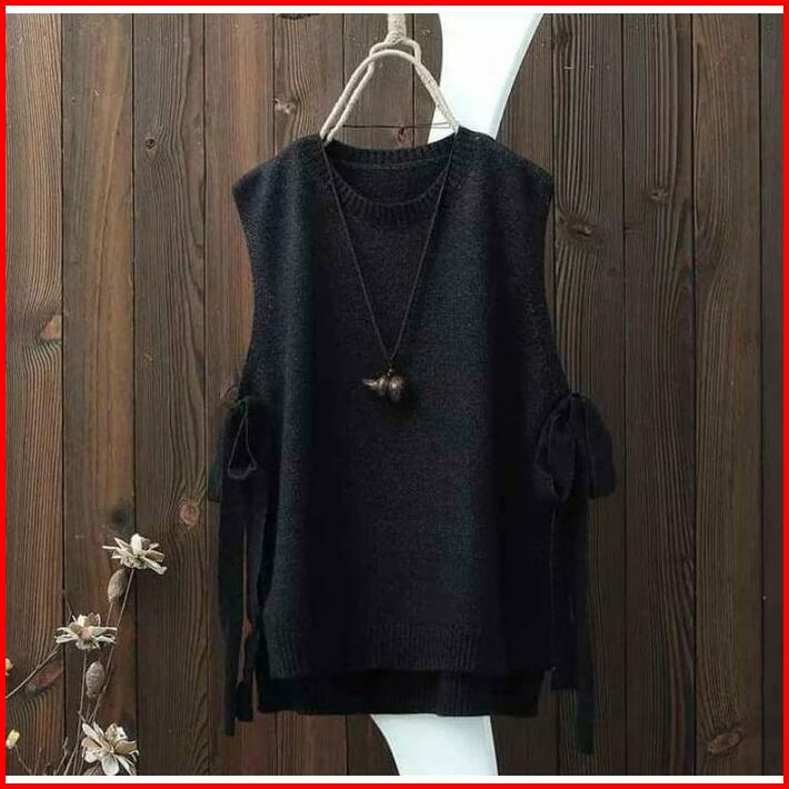 Vest Atasan Wanita Rompi Tiara Vest Tiara Rompi Rajut Wanita Vest Rompi Rajut Polos Crew Neck Tebal Wanita Panjang Atasa