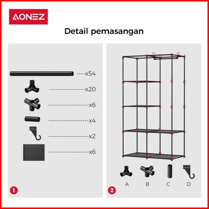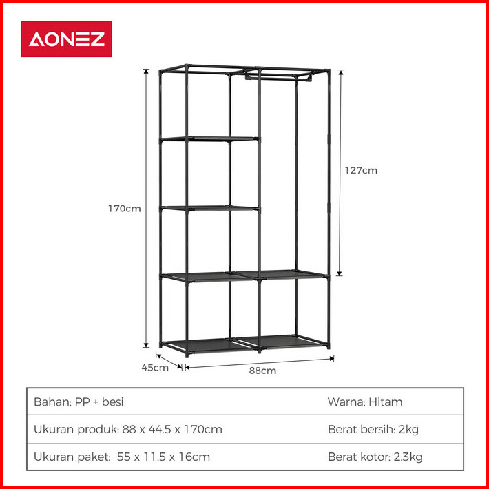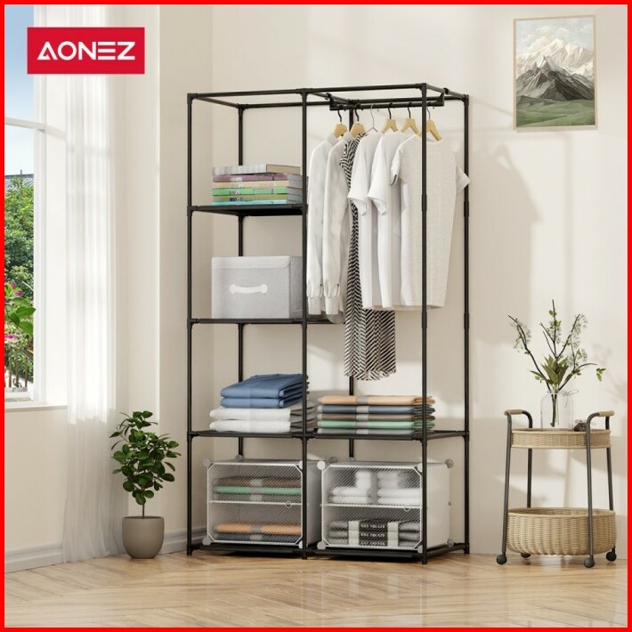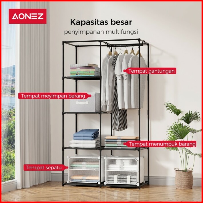 Aonez Lemari Pakaian Minimalis Wardrobe Portable Rak Serbaguna Baju