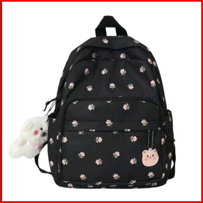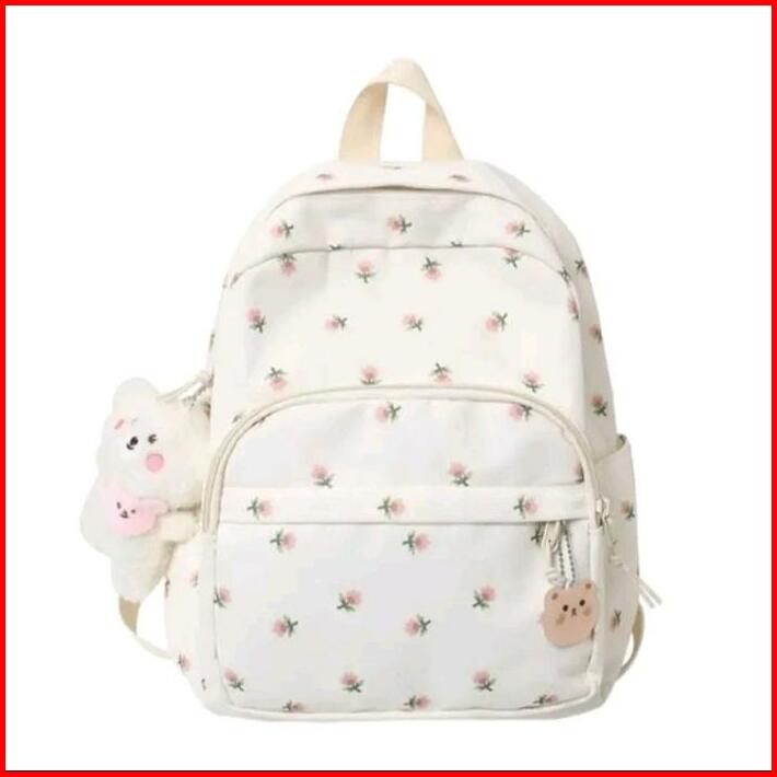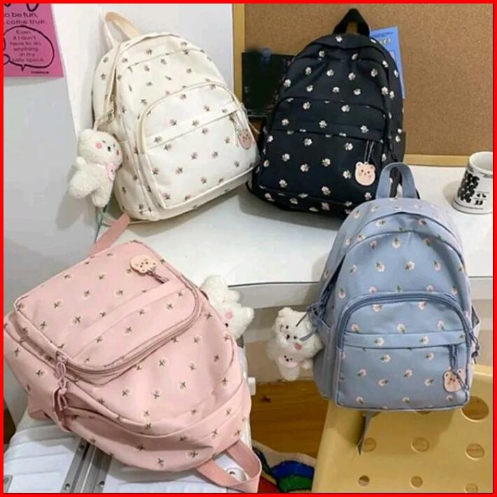 Nura Bags Tas Ransel Anak Sekolah Perempuan Terbaru Populer Motif Bunga Tulip Korean Style Tas Gendong Wanita