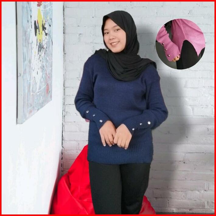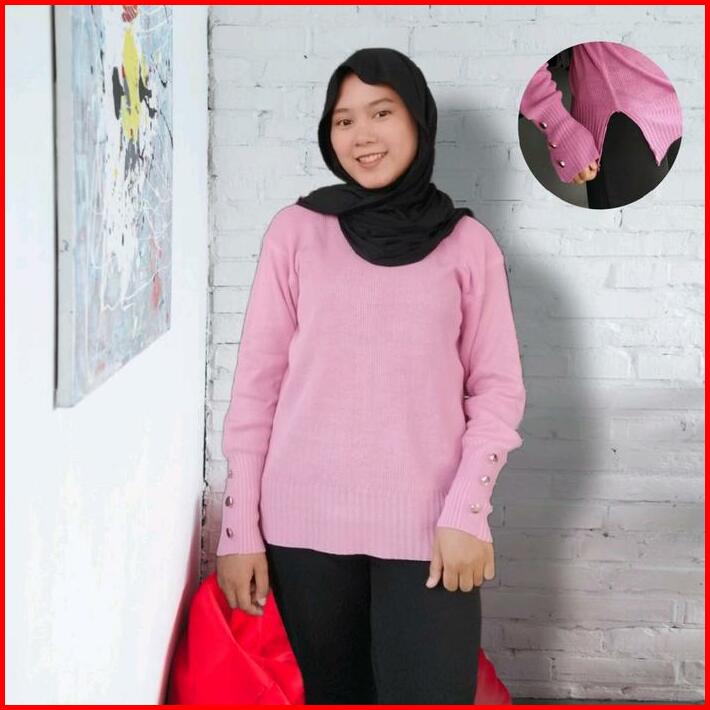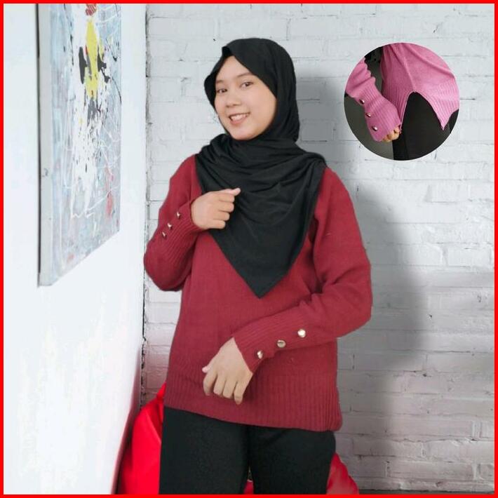 Atasan Rajut Wanita Outer Inara Sweater Rajut Wanita Dengan Lengan Kancing Atasan