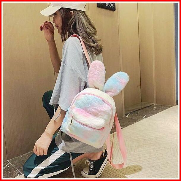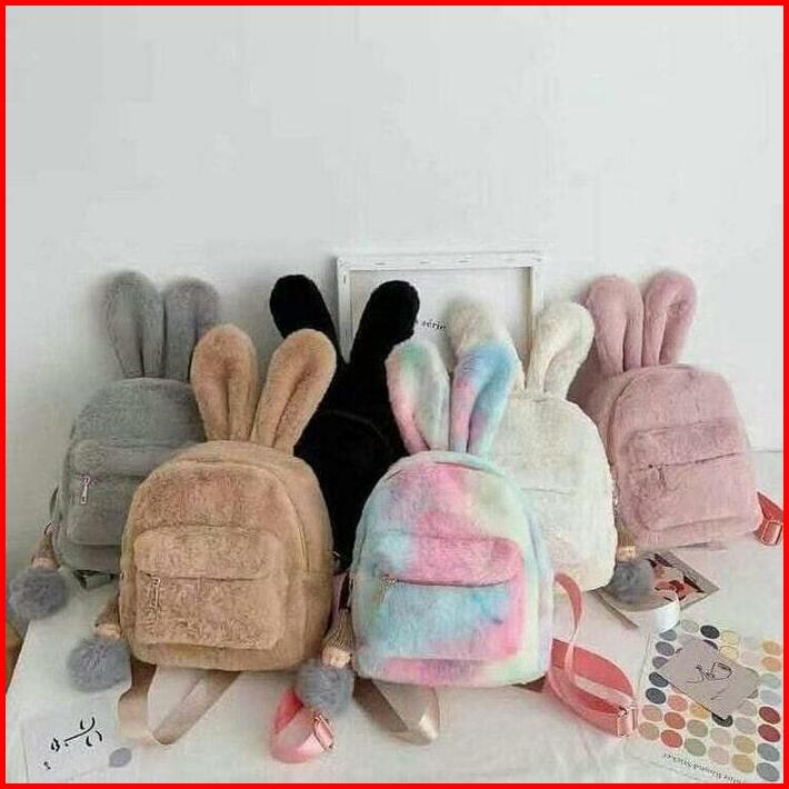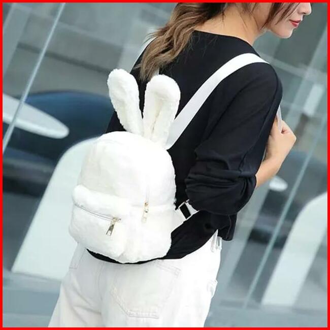 Tas Ransel Bulu Wanita Bentuk Kelinci Backpack Mini Wanita Tas Ransel Sekolah Kuliah Cewek Remaja Anak Sma Tas Gendong P