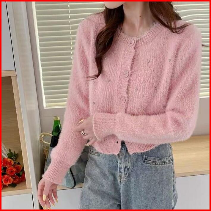 Cardigan Rajut Bulu Halus Mutiara Wanita 13478