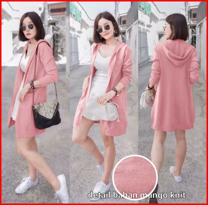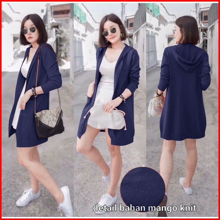 Outer Long Rajut Wanita Import Tebal Lembut Cardi Hoodie Rajut Luvita