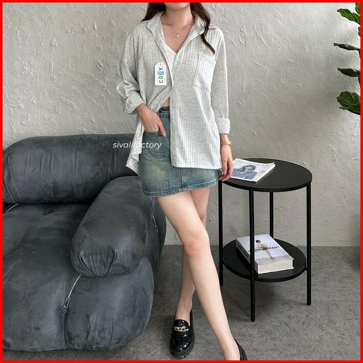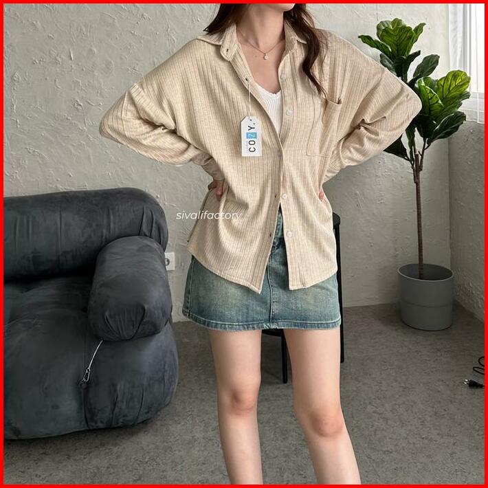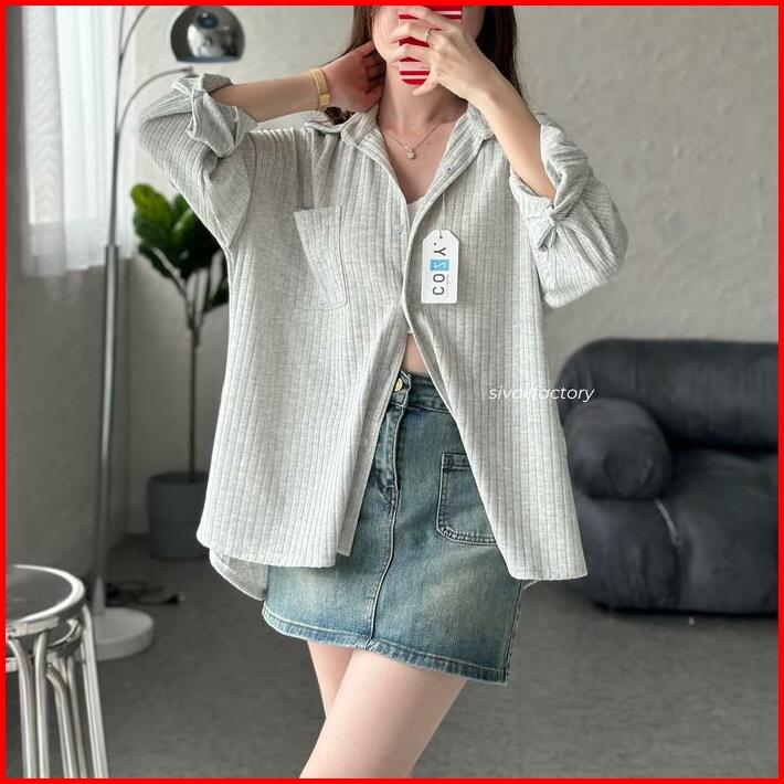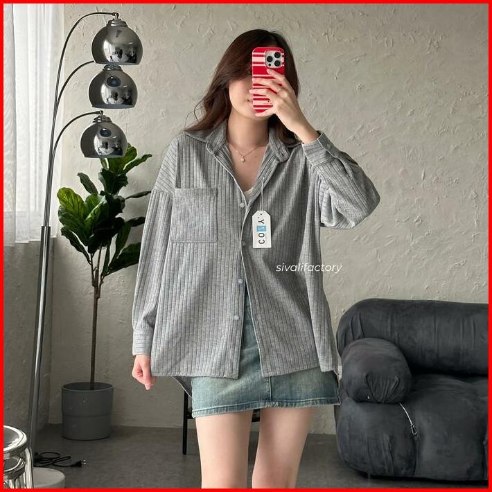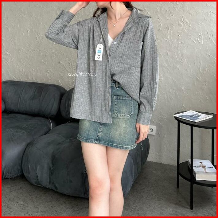 Sivali Cathy Shirt Kemeja Knit Oversized Wanita Lengan Panjang Atasan Kantor Casual Basic Loose Anti Kusut Baju Knitwear