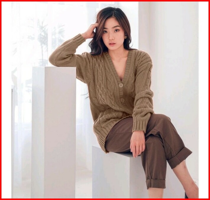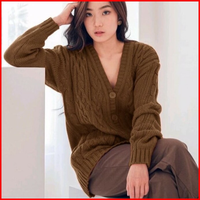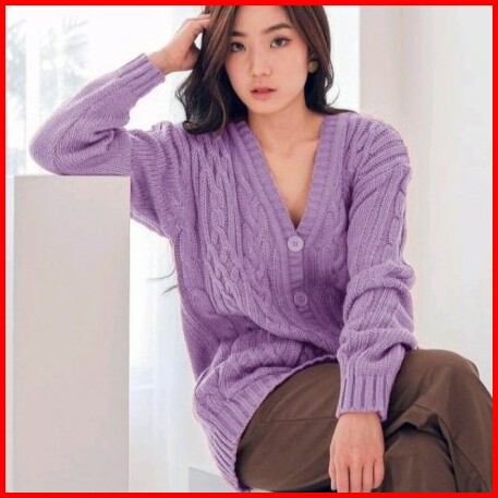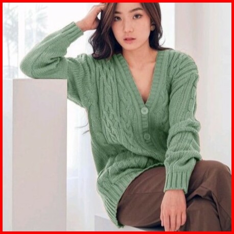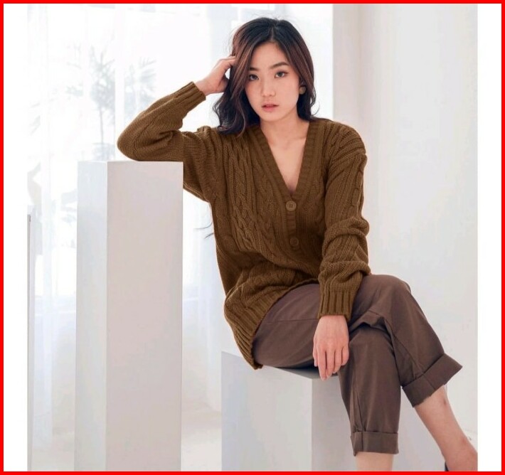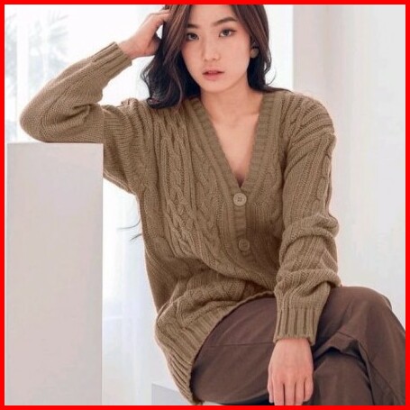 Cardigan Wanita Cable Knit Outer Rajut 3