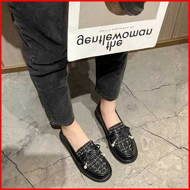 Mivelshoes Sepatu Loafers Wanita Hitam Black Flat Shoes Premium Fashion Korea Kasual Kerja Kantor Hangout Flatshoes Kare
