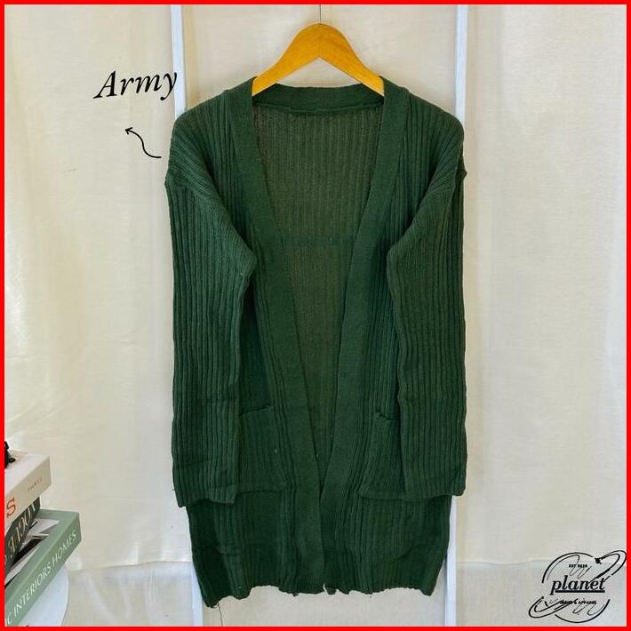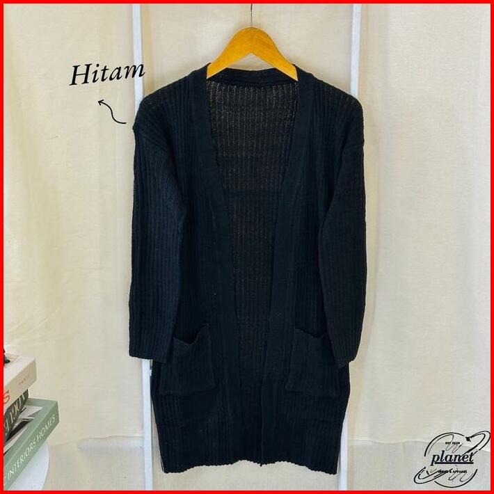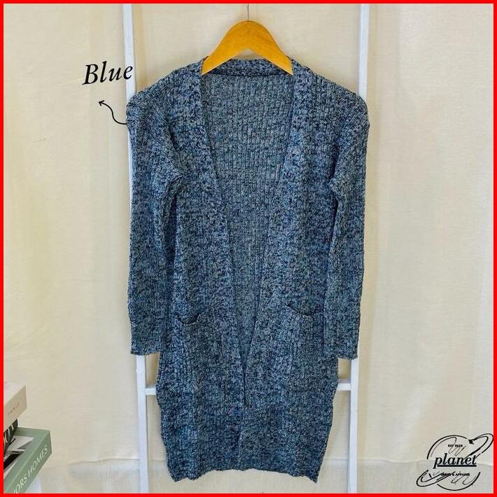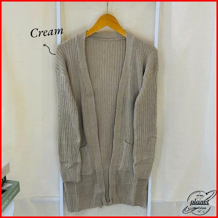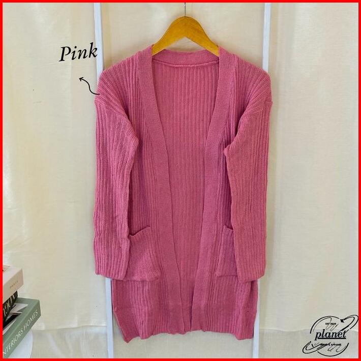 Cardigan Wanita Korean Style Long Cardigan Panjang Tebal Outer Rajut Oversize Polos Saku Depan Baju Atasan Kardigan Leng