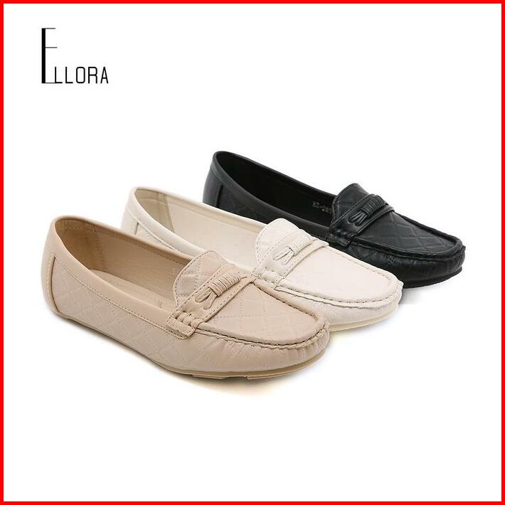 Ez-2650 Sepatu Flat Wanita Loafers Kerja Import Black Slip Resistant Elegant