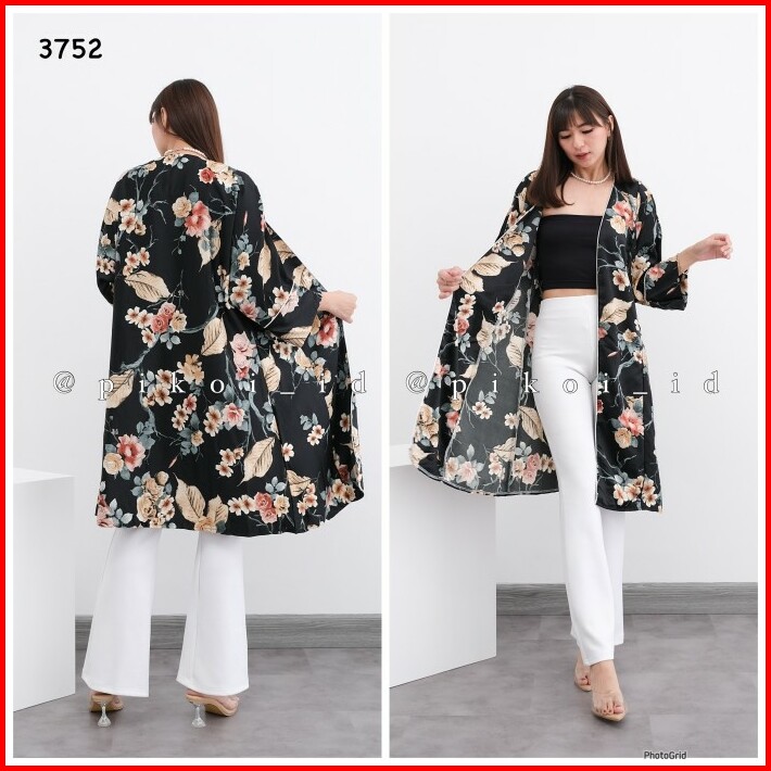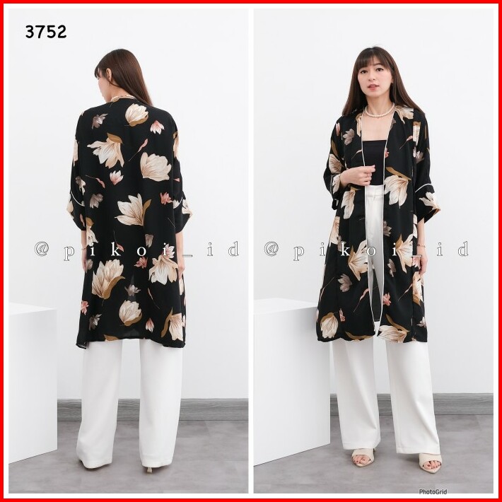 Cardigan Wanita Panjang Maxi Outer Bunga Luaran Katun Floral Summer