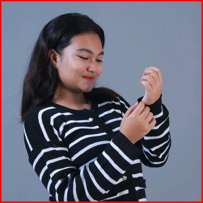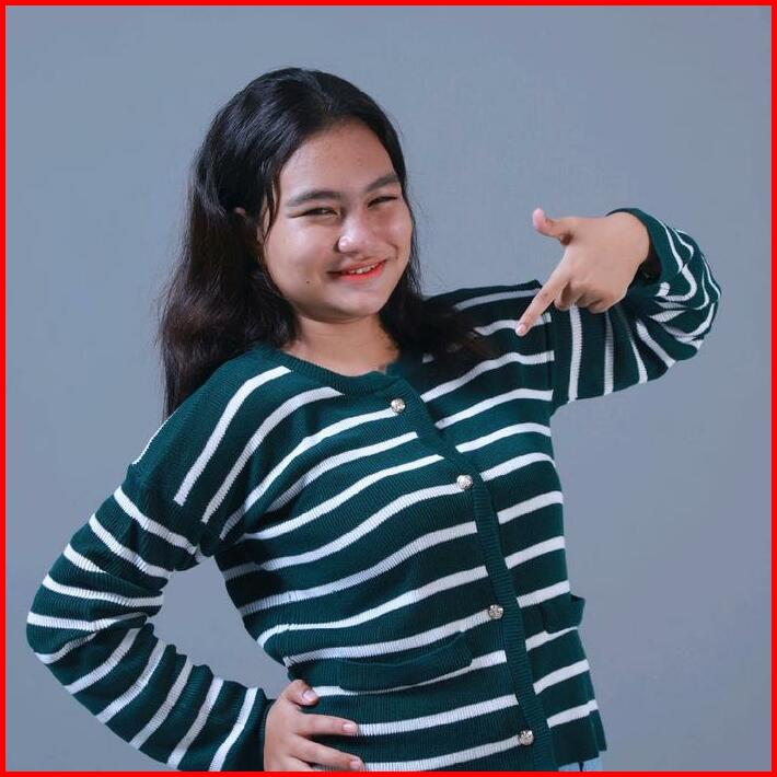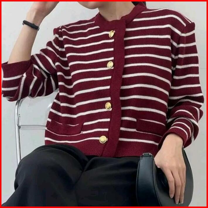Cesy Cardigan Rajut Strip Outer Garis Dewasa Crop Knitwear Wanita Panjang Wanita Panjang Wanita Panjang Atasan Sweater A