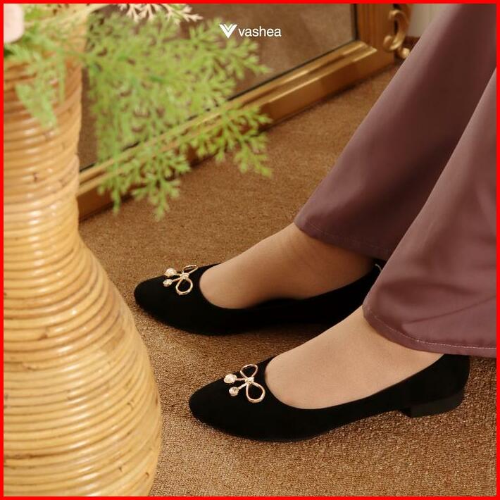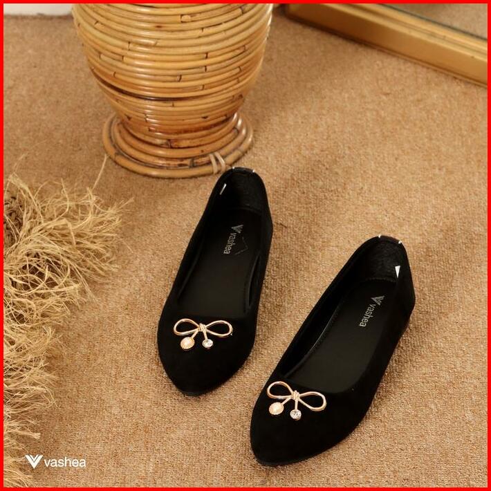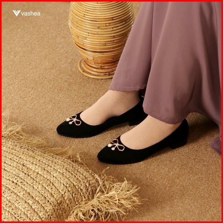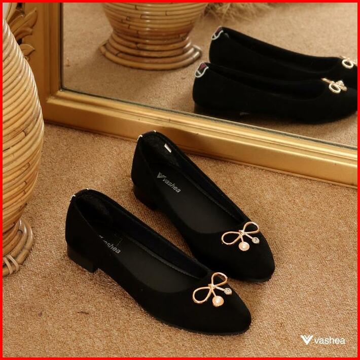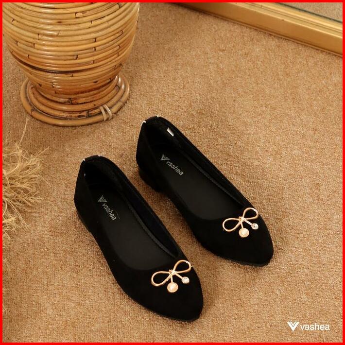 Vashea Kanao Flatshoes Wanita Cantik Sepatu Kerja Elegan Hak 2cm
