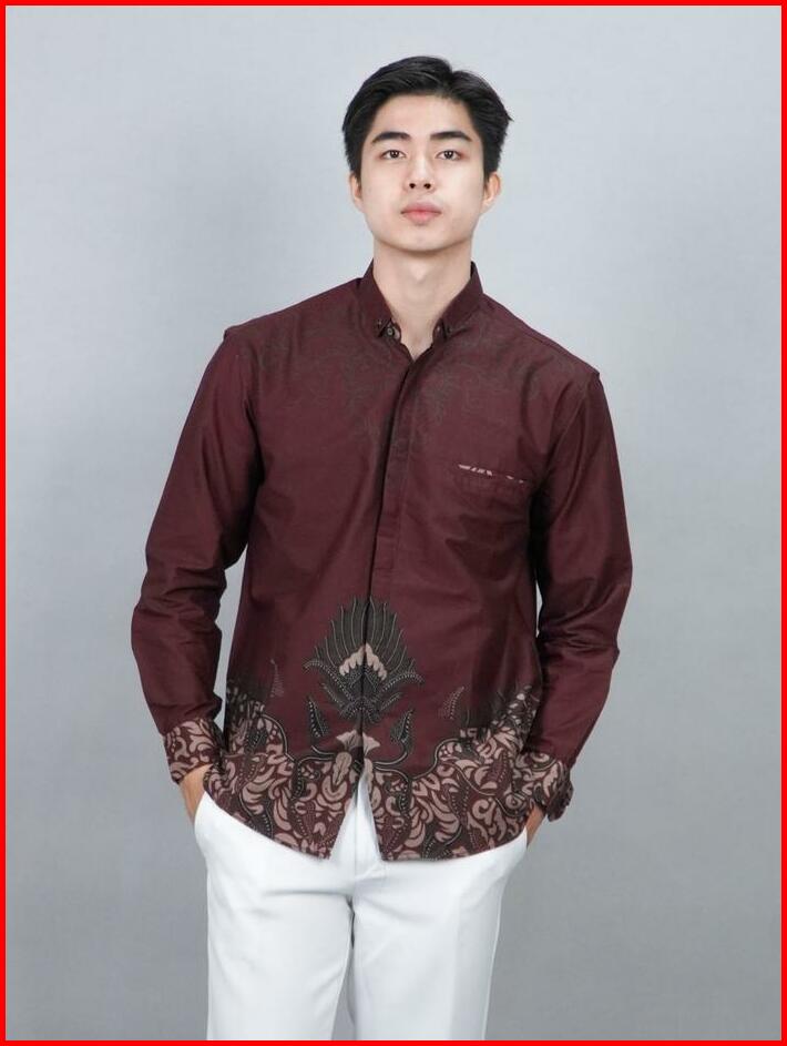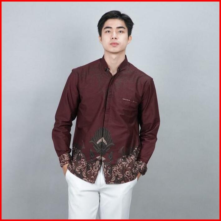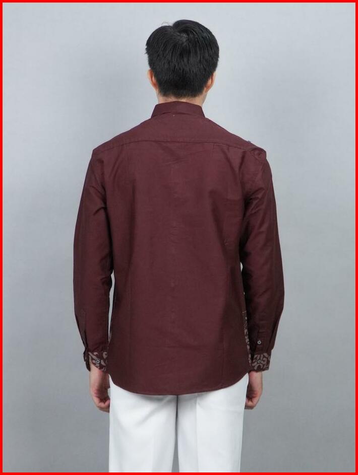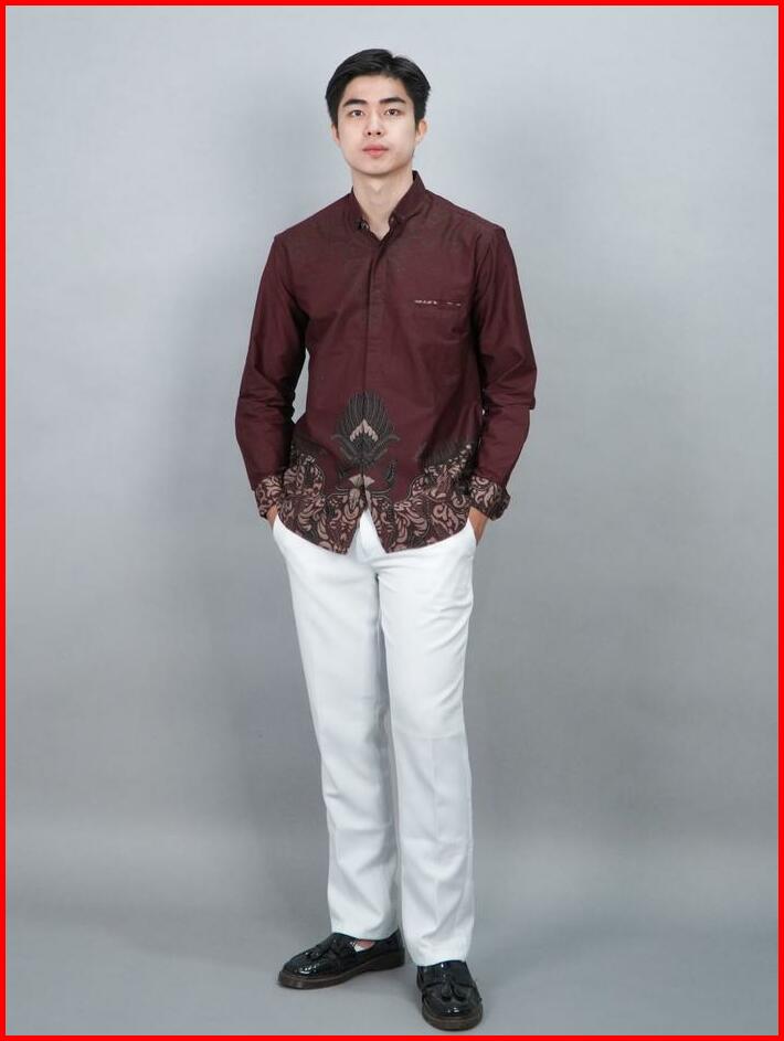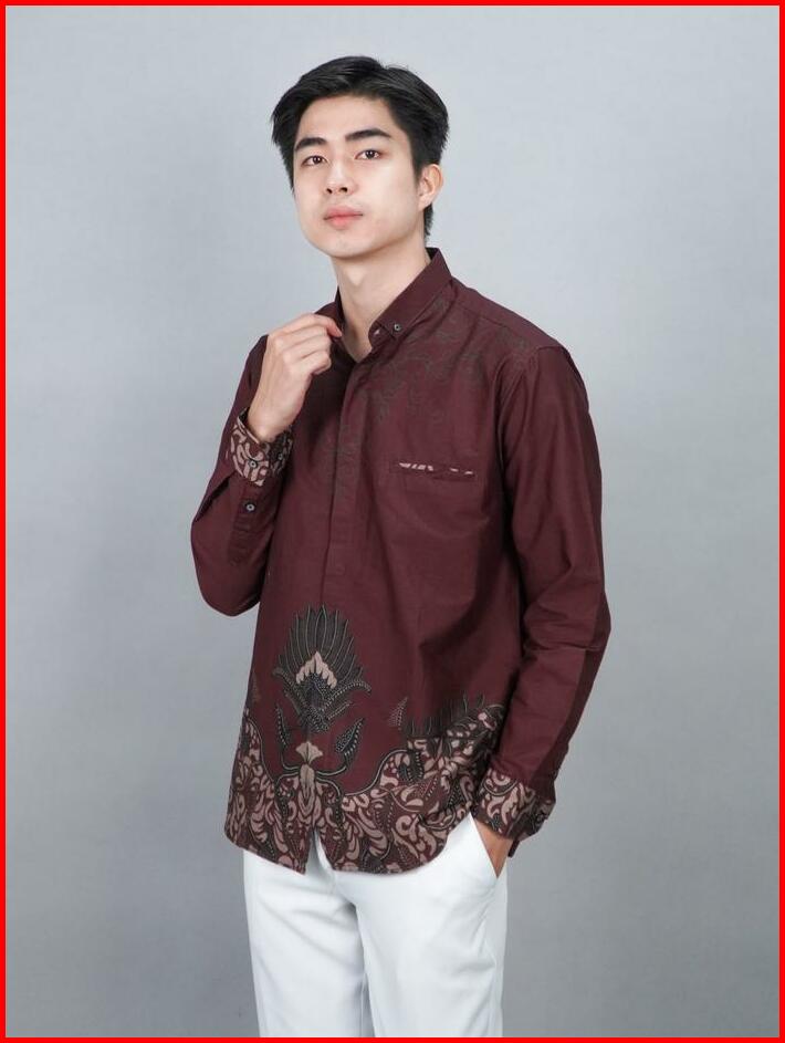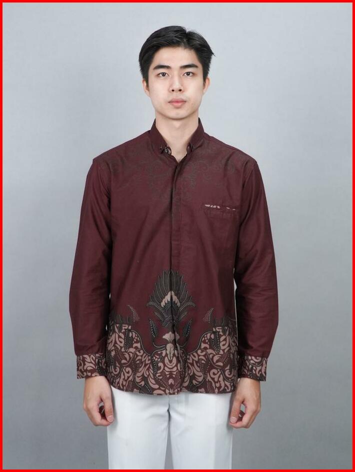 Swipe Up Kemeja Batik Pria Modern Katun Slimfit Lengan Panjang Widura Maroon Baju Formal