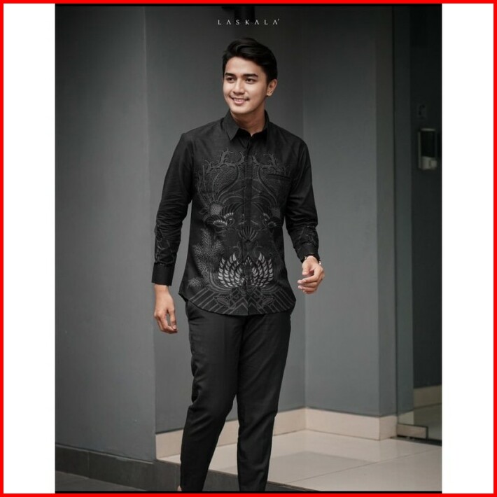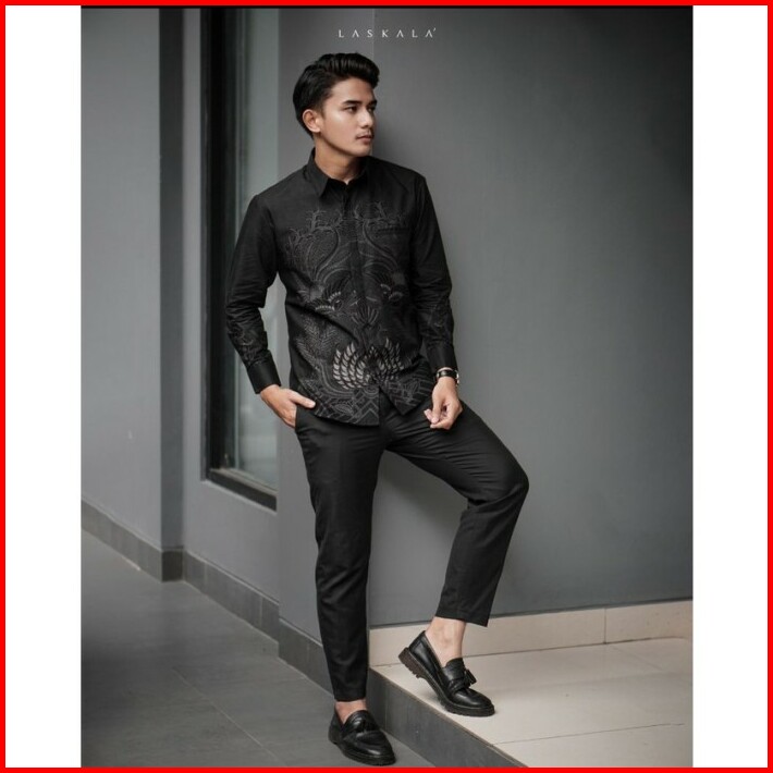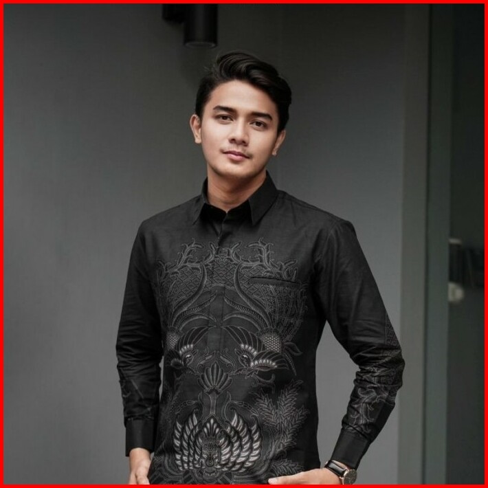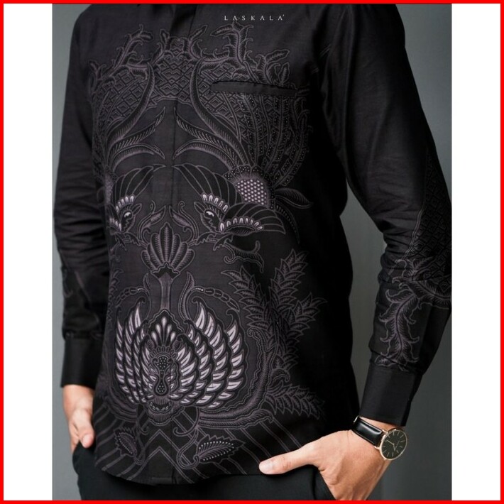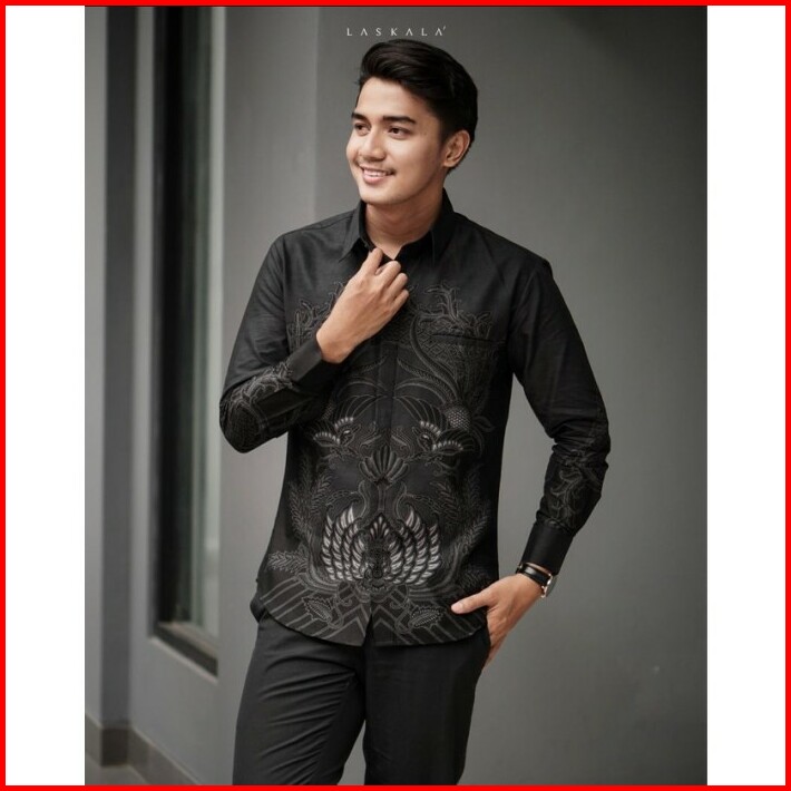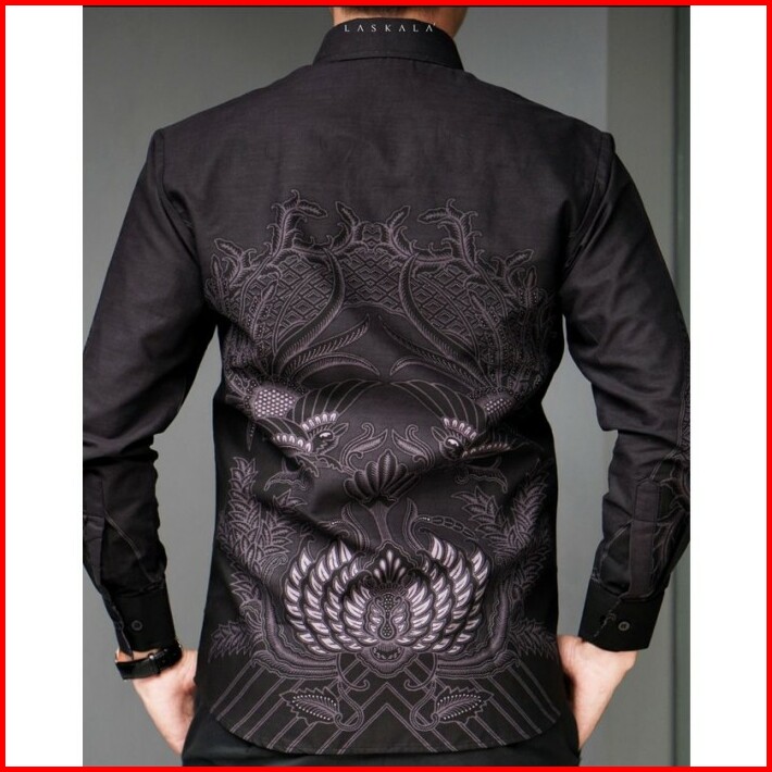 Kemeja Batik Pria Lengan Panjang Slimfit Pusaka Gading Hitam Series