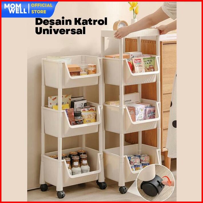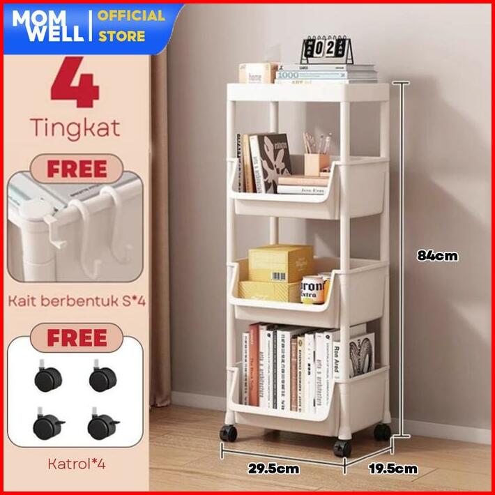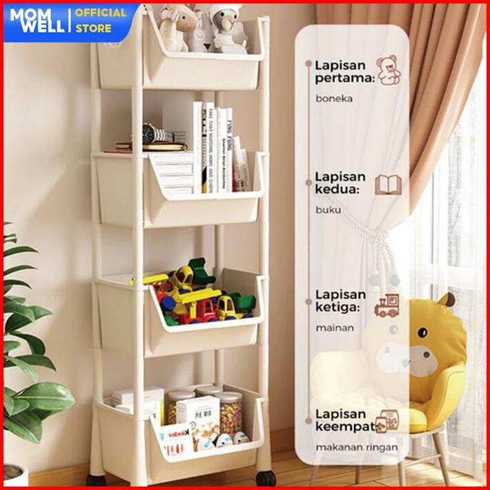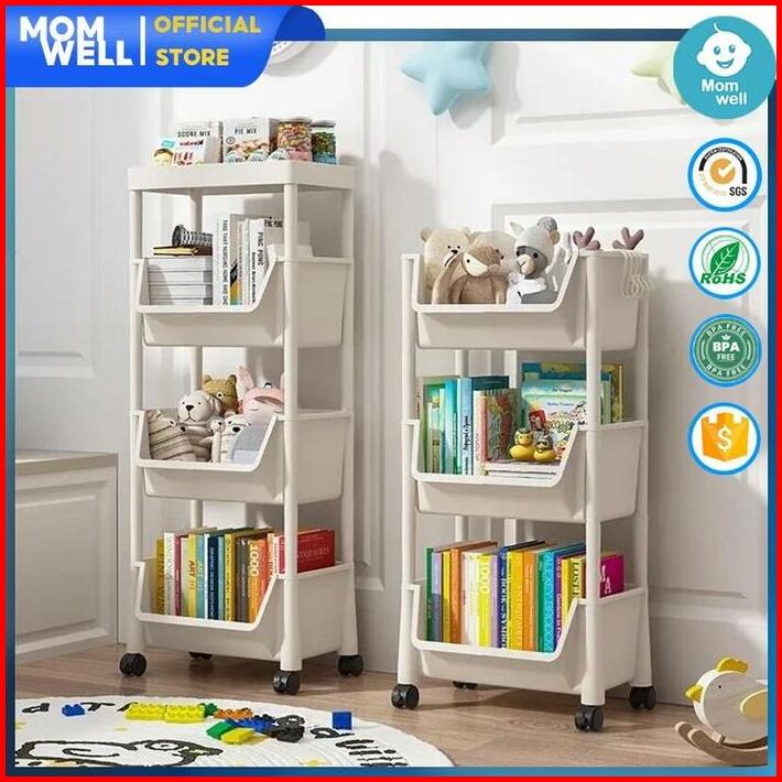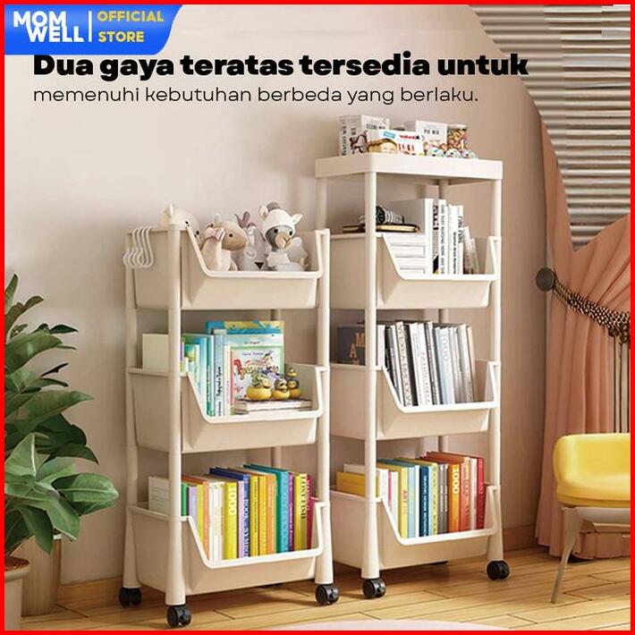 Momwell Serbaguna Tempat Rak Buku Anak Lemari Buku Plastik Rak Portable Mainan Rak Roda Toy Storage Set Furniture